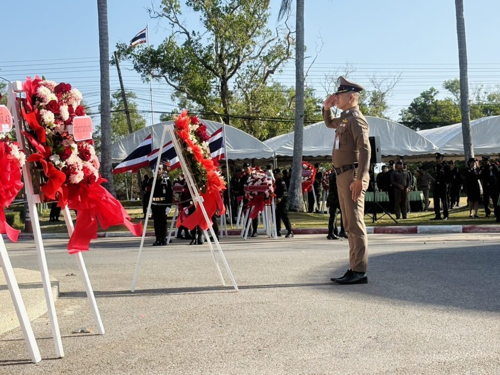 เมื่อวันที่ 3 ก.พ.69 เวลา 07.30 น. พ.ต.อ.อภิชา สุขประสงค์ รอง ผบก.ภ.จว.ปัตตานี ร่วมพิธีวางพวงมาลาสดุดีวีรชนทหารกล้าและเชิดชูเกียรติทหารผ่านศึก โดยมี พล.อ.จตุพร กลัมพสุต ที่ปรึกษา กอ.รมน.ภาค 4 ส่วนหน้า เป็นประธาน ณ มทบ.46 ค่ายอิงคยุทธบริหาร ต.บ่อทอง อ.หนองจิก จว.ปัตตานี