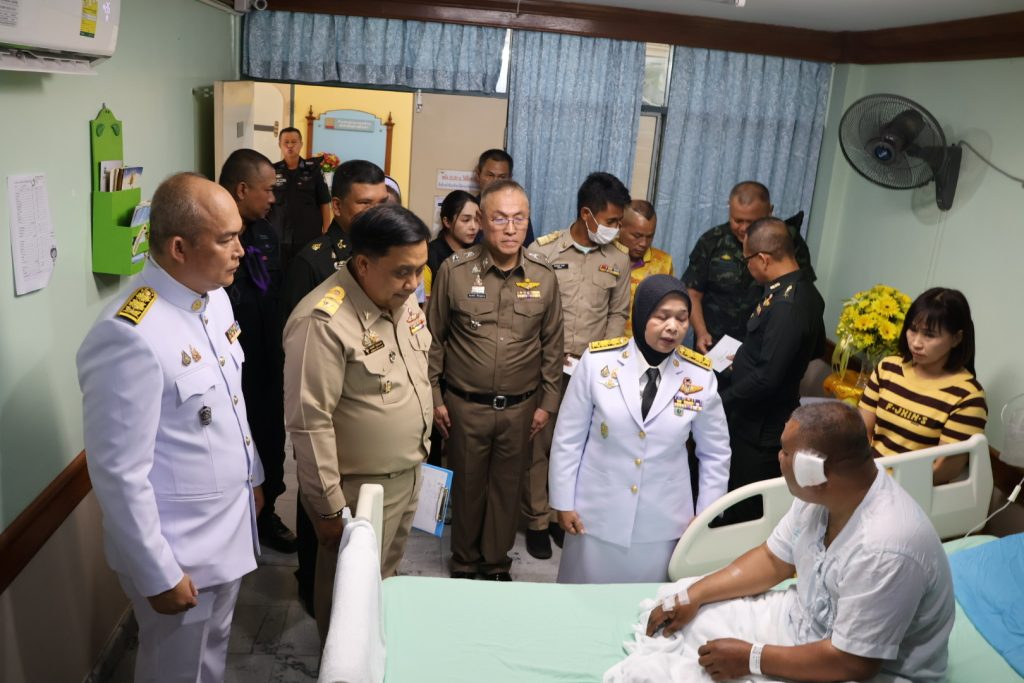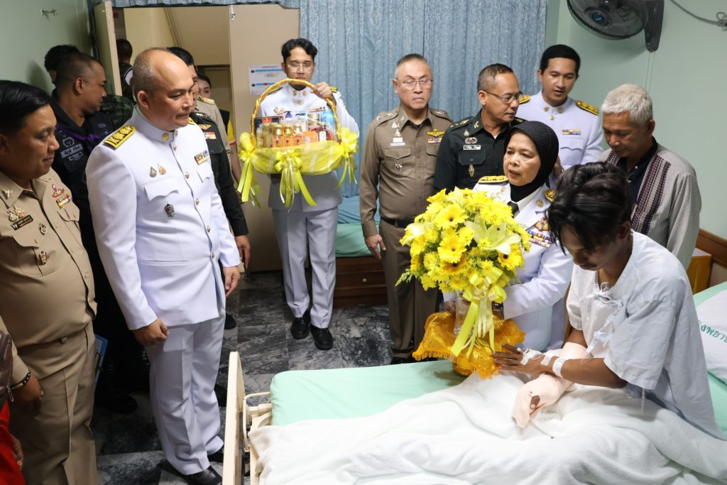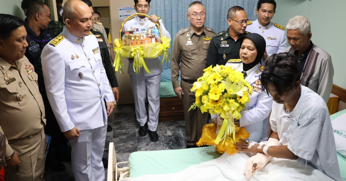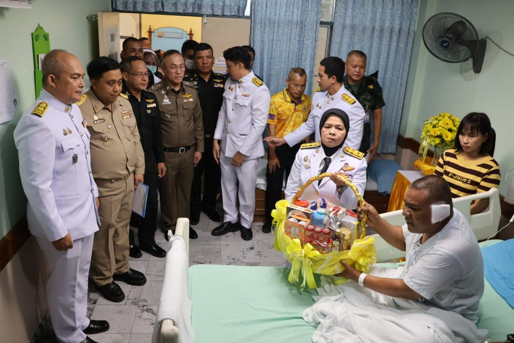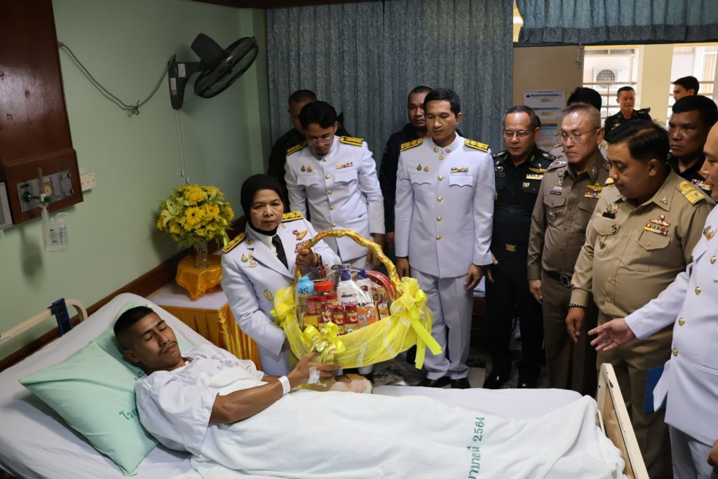 วันที่ 14 พ.ค.68 เวลา 15.30 น. พล.ต.ต.สันทัศน์ เชื้อพุฒตาล ผบก.ภ.จว.ปัตตานี ร่วมพิธีเชิญแจกันดอกไม้และตะกร้าสิ่งของพระราชทานเยี่ยมผู้ได้รับบาดเจ็บจากเหตุคนร้ายลอบวางระเบิด บริเวณถนนสาย 42 บ้านราวอ ม.4 ต.กระหวะ อ.มายอฯ เมื่อวันที่ 13 พ.ค.68 ที่ผ่านมา โดยมี นางพาตีเมาะ สะดียามู ผู้ว่าราชการจังหวัดปัตตานี เป็นประธาน ณ โรงพยาบาลปัตตานี