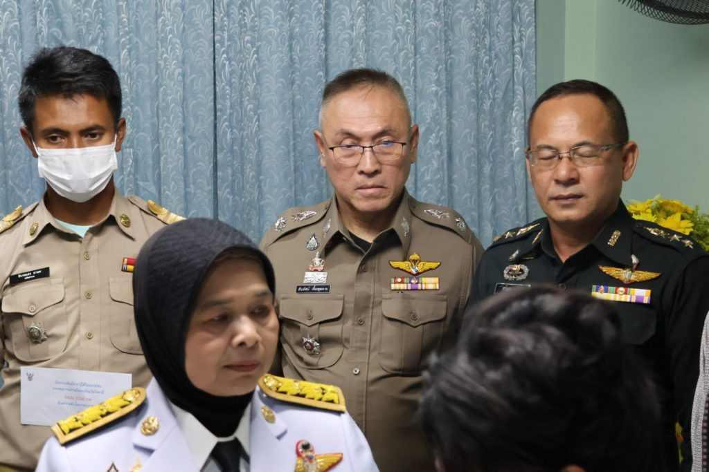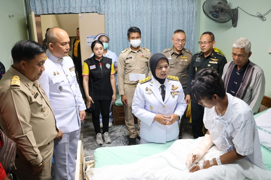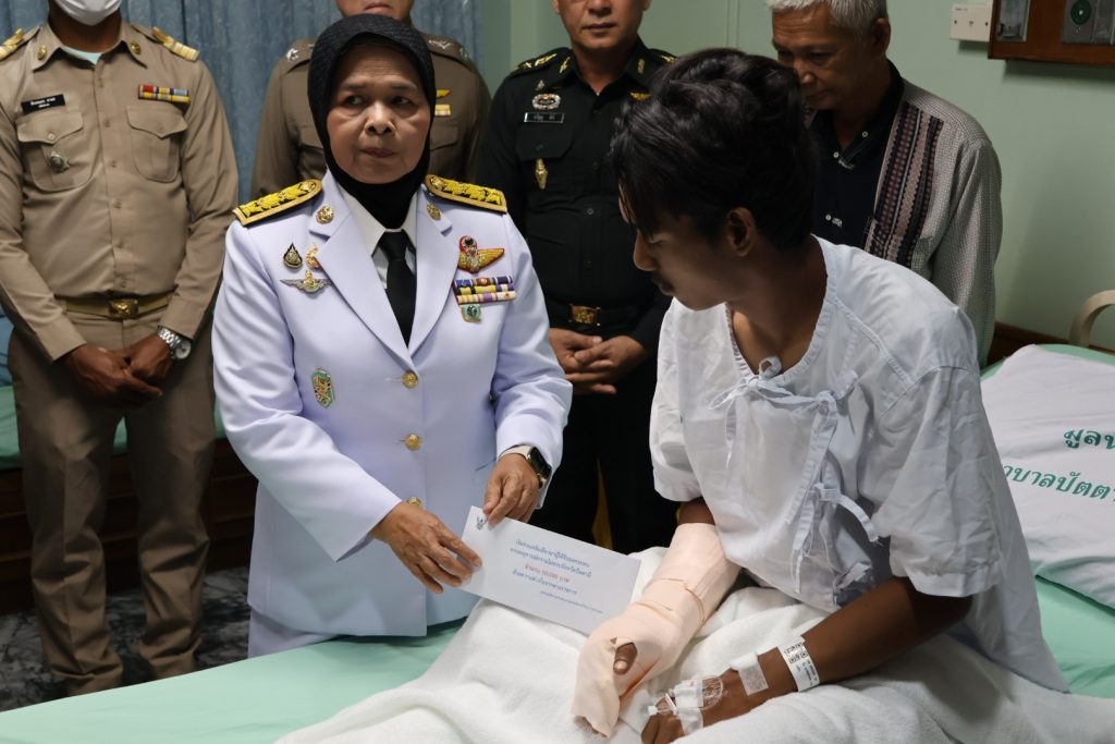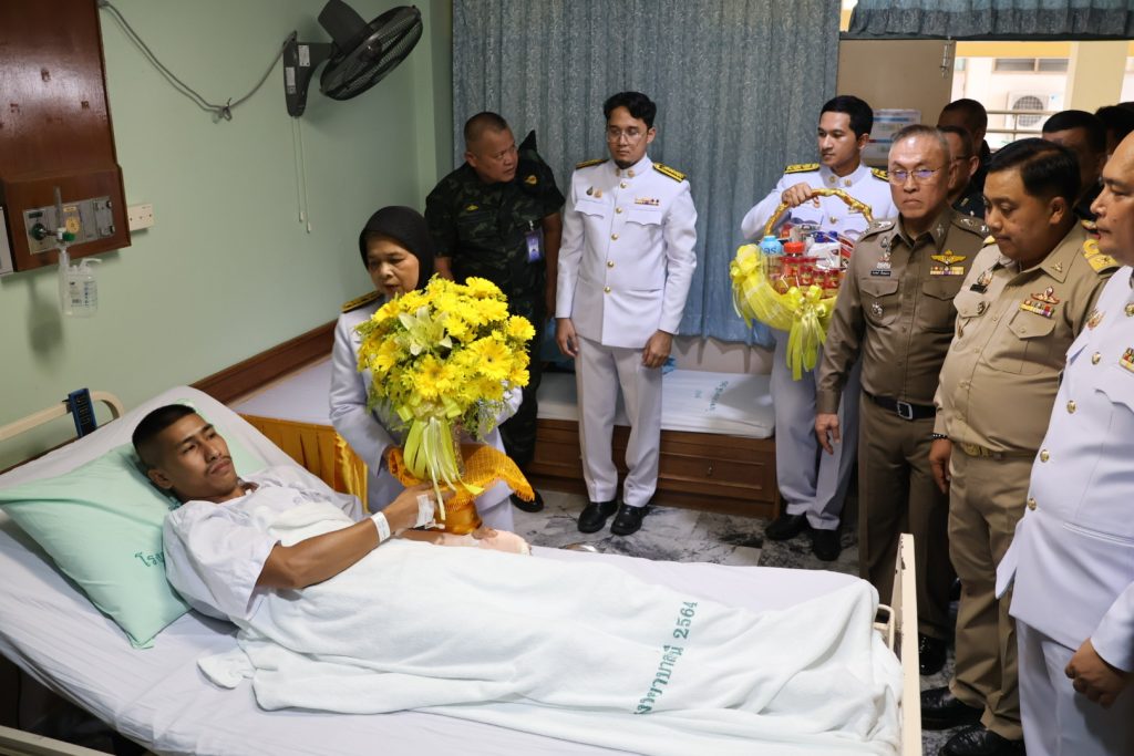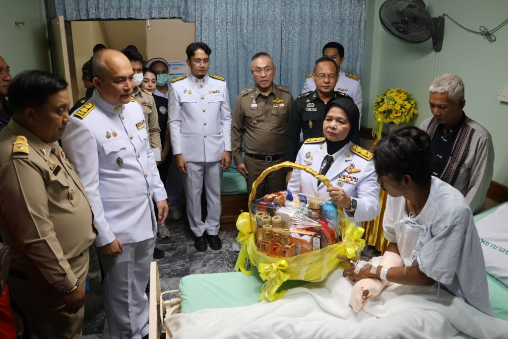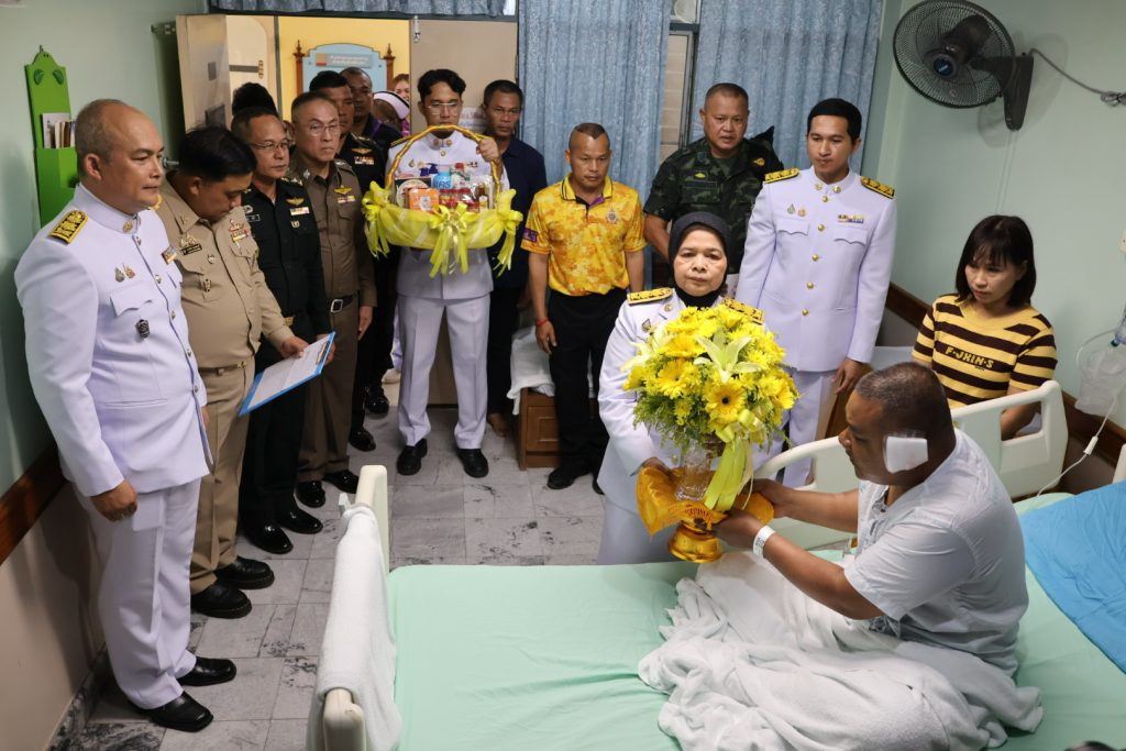 วันที่ 14 พ.ค.68 เวลา 15.30 น. พล.ต.ต.สันทัศน์ เชื้อพุฒตาล ผบก.ภ.จว.ปัตตานี ร่วมพิธีเชิญแจกันดอกไม้และตะกร้าสิ่งของพระราชทานเยี่ยมผู้ได้รับบาดเจ็บจากเหตุคนร้ายลอบวางระเบิด บริเวณถนนสาย 42 บ้านราวอ ม.4 ต.กระหวะ อ.มายอฯ เมื่อวันที่ 13 พ.ค.68 ที่ผ่านมา โดยมี นางพาตีเมาะ สะดียามู ผู้ว่าราชการจังหวัดปัตตานี เป็นประธาน ณ โรงพยาบาลปัตตานี