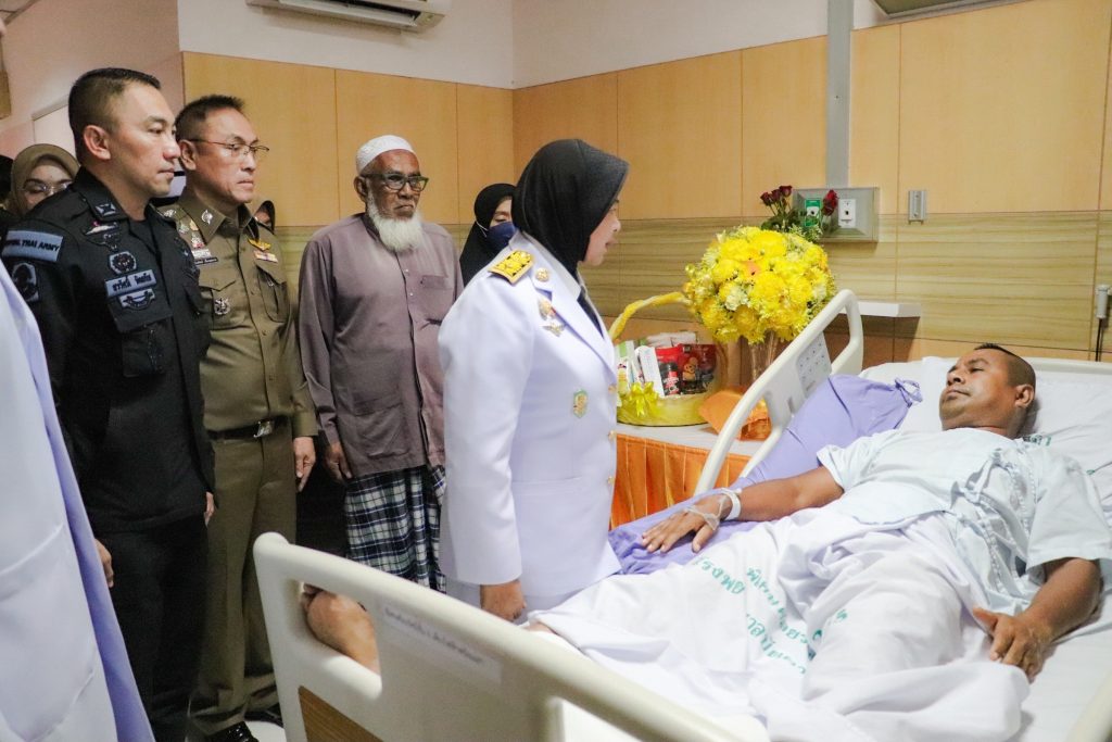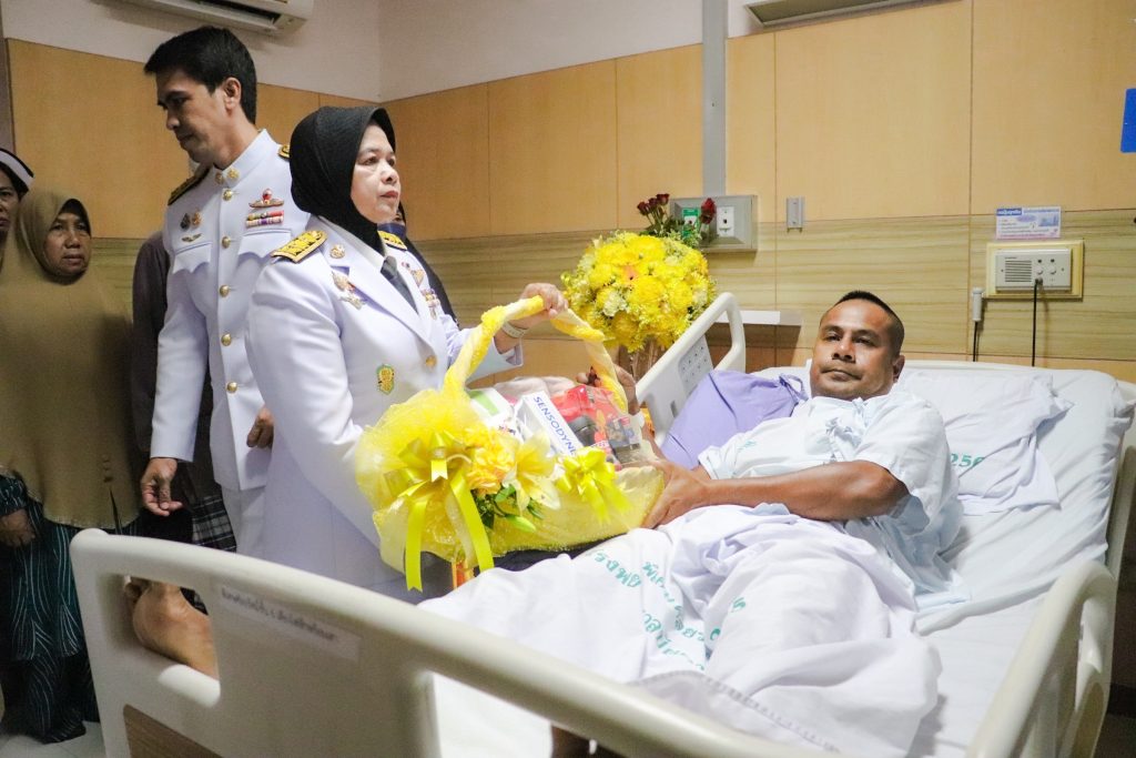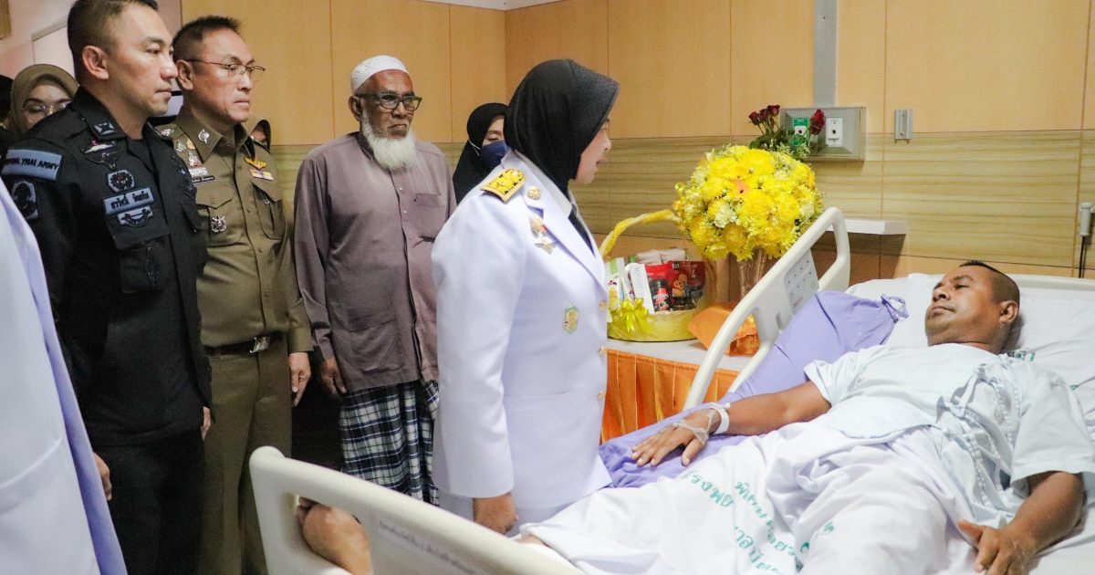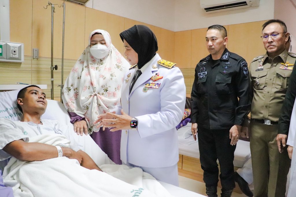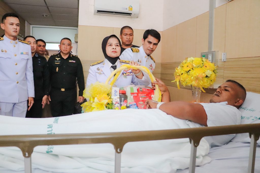 เมื่อวันที่ 4 มิ.ย.68 เวลา 09.00 น. พล.ต.ต.สันทัศน์ เชื้อพุฒตาล ผบก.ภ.จว.ปัตตานี ร่วมพิธีเชิญแจกันตะกร้าสิ่งของพระราชทาน แก่เจ้าหน้าที่ทหารและผู้ได้รับบาดเจ็บจากเหตุการณ์ความไม่สงบ กรณีเหตุคนร้ายลอบวางระเบิดเจ้าหน้าที่ทหาร ร้อย.ทพ.4214 ในพื้นที่ อ.ปะนาเระ จว.ปัตตานี เมื่อวันที่ 2 มิ.ย.68 ณ โรงพยาบาลปัตตานี