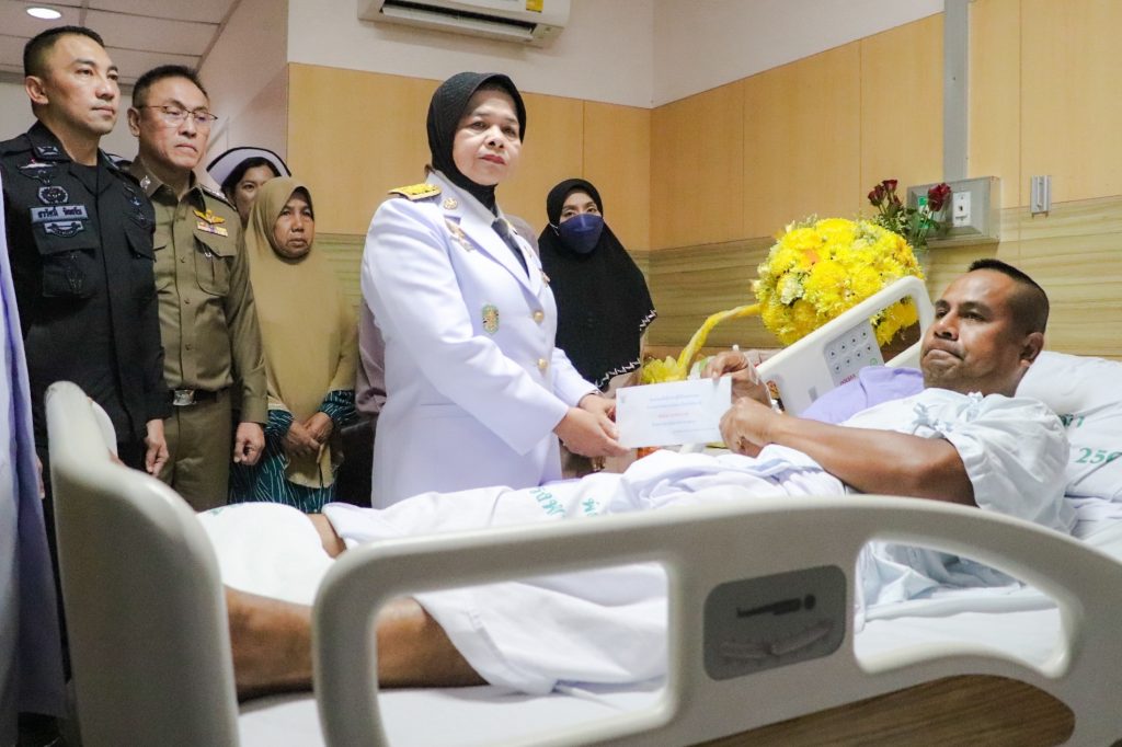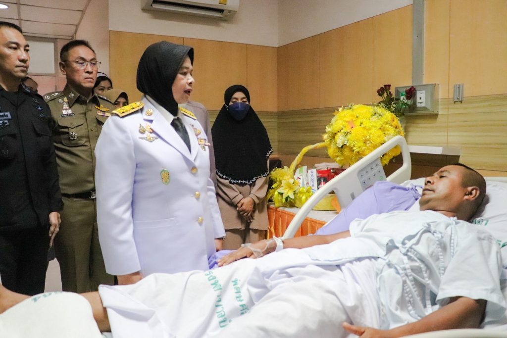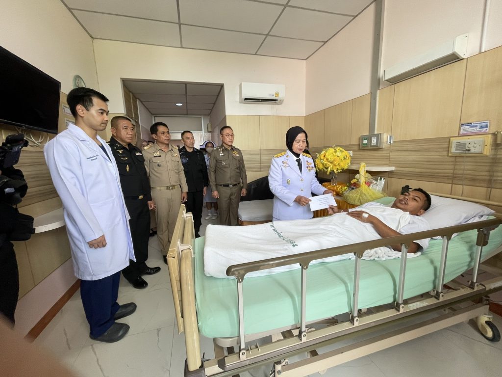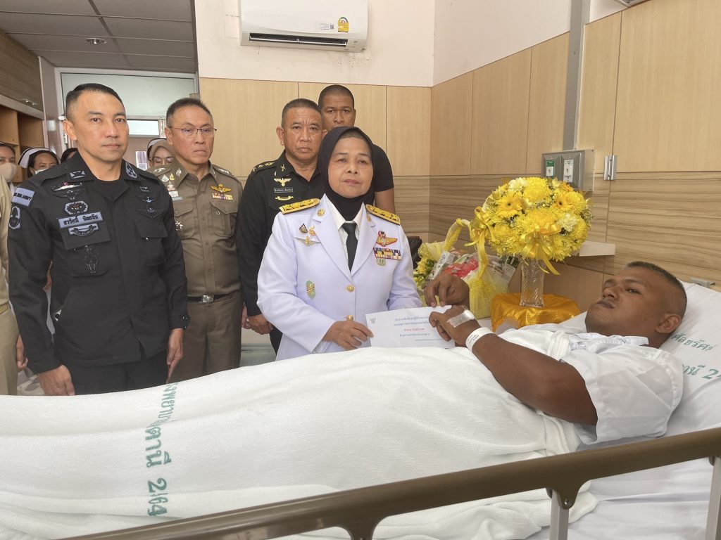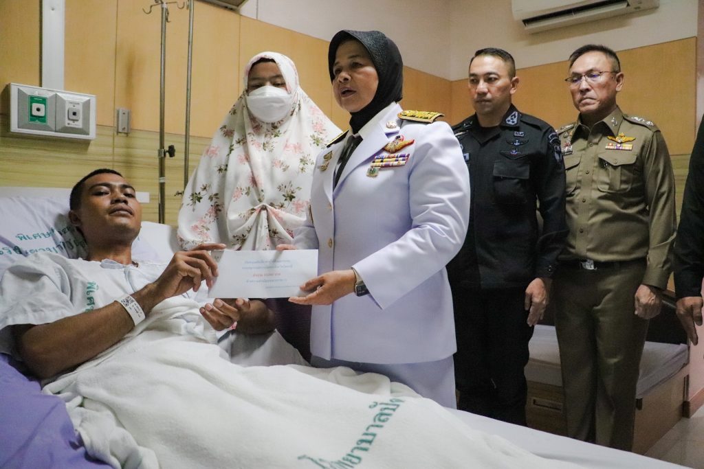 เมื่อวันที่ 4 มิ.ย.68 เวลา 09.00 น. พล.ต.ต.สันทัศน์ เชื้อพุฒตาล ผบก.ภ.จว.ปัตตานี ร่วมพิธีเชิญแจกันตะกร้าสิ่งของพระราชทาน แก่เจ้าหน้าที่ทหารและผู้ได้รับบาดเจ็บจากเหตุการณ์ความไม่สงบ กรณีเหตุคนร้ายลอบวางระเบิดเจ้าหน้าที่ทหาร ร้อย.ทพ.4214 ในพื้นที่ อ.ปะนาเระ จว.ปัตตานี เมื่อวันที่ 2 มิ.ย.68 ณ โรงพยาบาลปัตตานี