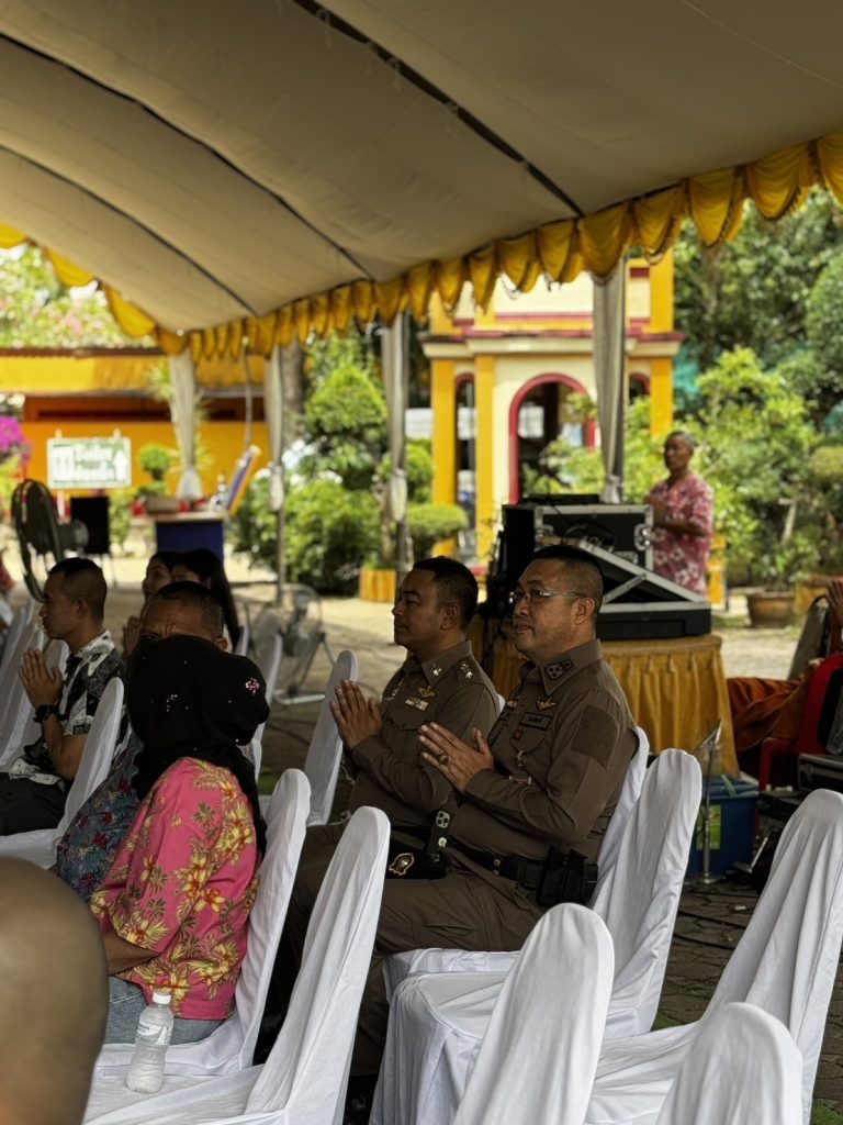 วันที่ 13 เม.ย.68 เวลา 13.00 น. พล.ต.ต.สันทัศน์ เชื้อพุฒตาล ผบก.ภ.จว.ปัตตานี, พ.ต.อ.ศุภกร พึ่งรศ รอง ผบก.ภ.จว.ปัตตานี, พ.ต.อ.ชาญศราวุธ แสงอรุณ ผกก.สภ.นาประดู่, ว่าที่ พ.ต.อ.ปัญญา อู่ตะเภา ผกก.สภ.แม่ลาน ร่วมพิธีเปิดงานสรงน้ำสมเด็จหลวงพ่อทวดเหยียบน้ำทะเลจืด อาจารย์ทิม และพระเถระ ประจำปี 2568 โดยมี นายสนั่น สนธิเมือง รองผู้ว่าราชการจังหวัดปัตตานี เป็นประธาน ณ วัดราษฎร์บูรณะ (วัดช้างให้) อ.โคกโพธิ์ จว.ปัตตานี