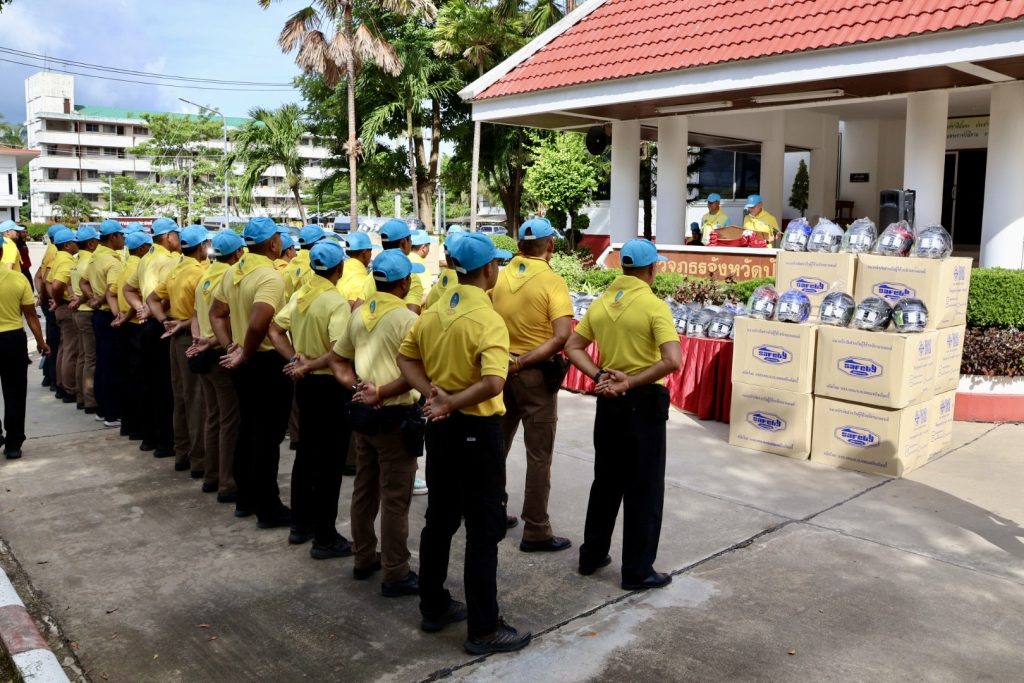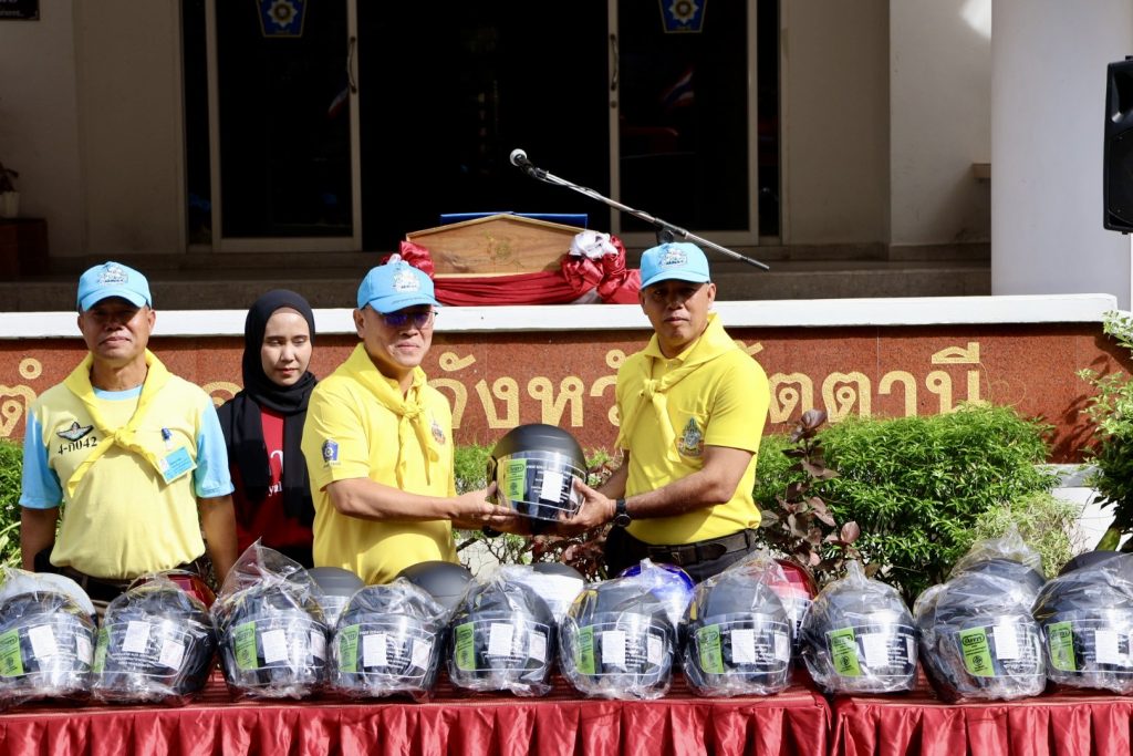 วันที่ 28 ธ.ค.67 เวลา 09.00 น. พล.ต.ต.สันทัศน์ เชื้อพุฒตาล ผบก.ภ.จว.ปัตตานี, พ.ต.อ.ประยงค์ โคตรสาขา รอง ผบก.ภ.จว.ปัตตานี ร่วมมอบหมวกนิรภัยให้กับ สภ. ในสังกัด เพื่อแจกจ่ายให้กับประชาชนในพื้นที่ โดยแนะนำ การขับขี่และประชาสัมพันธ์ ตามโครงการจิตอาสาจราจร รณรงค์การขับขี่ปลอดภัย สวมหมวกนิรภัย เพื่อลดอุบัติเหตุจราจรทางบก ในช่วงเทศกาลปีใหม่ พ.ศ.2568 ณ ตำรวจภูธรจังหวัดปัตตานี