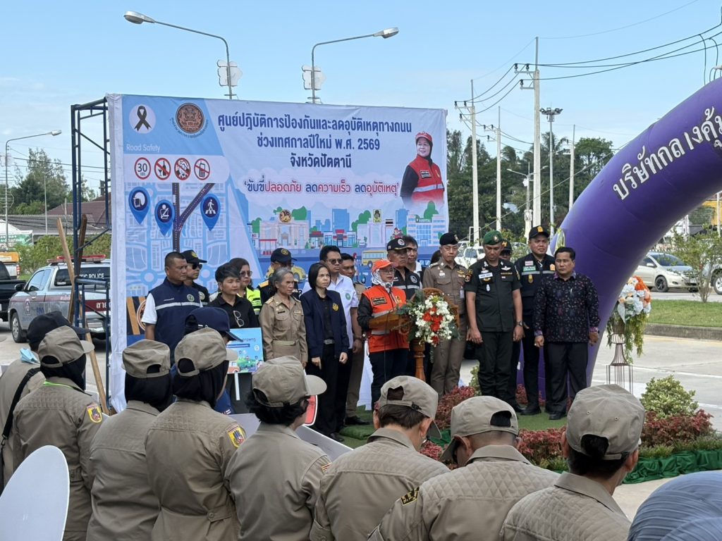 เมื่อวันที่ 29 ธ.ค.68 เวลา 16.00 น. พ.ต.อ.อภิชา สุขประสงค์ รอง ผบก.ภ.จว.ปัตตานี, พ.ต.อ.ฟาฮามี เฮ็งปิยา ผกก.ปพ.ภ.จว.ปัตตานี พร้อมส่วนราชการและหน่วยงานที่เกี่ยวข้อง ร่วมเป็นเกียรติพิธีเปิดศูนย์ปฏิบัติการป้องกันและลดอุบัติเหตุทางถนนช่วงเทศกาลปีใหม่ พ.ศ.2569 จังหวัดปัตตานี โดยมี นางพาตีเมาะ สะดียามู ผู้ว่าราชการจังหวัดปัตตานี เป็นประธาน ณ บริเวณถนนระหว่างแยกงาแม่นอก-งาแม่ใน ต.รูสะมิแล อ.เมือง จว.ปัตตานี
