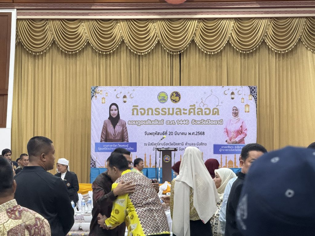 วันที่ 20 มี.ค.68 เวลา 17.00 น. พ.ต.อ.สิทธิพงษ์ หัสรังษี รอง ผบก.ภ.จว.ปัตตานี ร่วมเป็นเกียรติในกิจกรรมละศีลอด รอมฎอนสัมพันธ์ โดยมี น.ส.ซาบีดา ไทยเศรษฐ์ รัฐมนตรีช่วยว่าการกระทรวงมหาดไทย เป็นประธาน ณ หอประชุม อบจ.ปัตตานี