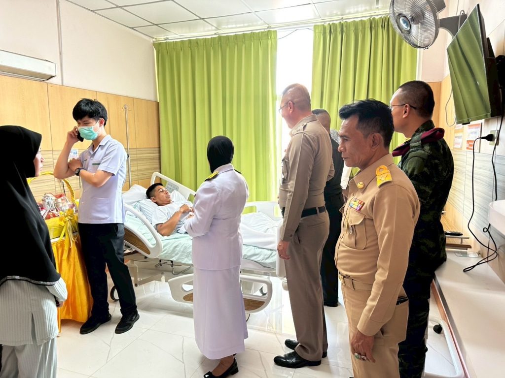 วันที่ 20 พ.ค.68 เวลา 14.00 น. พ.ต.อ.ศุภกร พึ่งรศ รอง ผบก.ภ.จว.ปัตตานี ร่วมเป็นเกียรติในพิธีเชิญแจกันดอกไม้ และตะกร้าสิ่งของพระราชทาน เยี่ยมผู้ได้รับบาดเจ็บจากเหตุคนร้ายลอบยิงเจ้าหน้าที่ อส.ชคต.ดอนทราย ในพื้นที่ อ.ไม้แก่น เมื่อวันที่ 19 พ.ค.68 ที่ผ่านมา โดยมี นางพาตีเมาะ สะดียามู ผู้ว่าราชการจังหวัดปัตตานี เป็นประธาน ณ โรงพยาบาลปัตตานี อ.เมือง จว.ปัตตานี