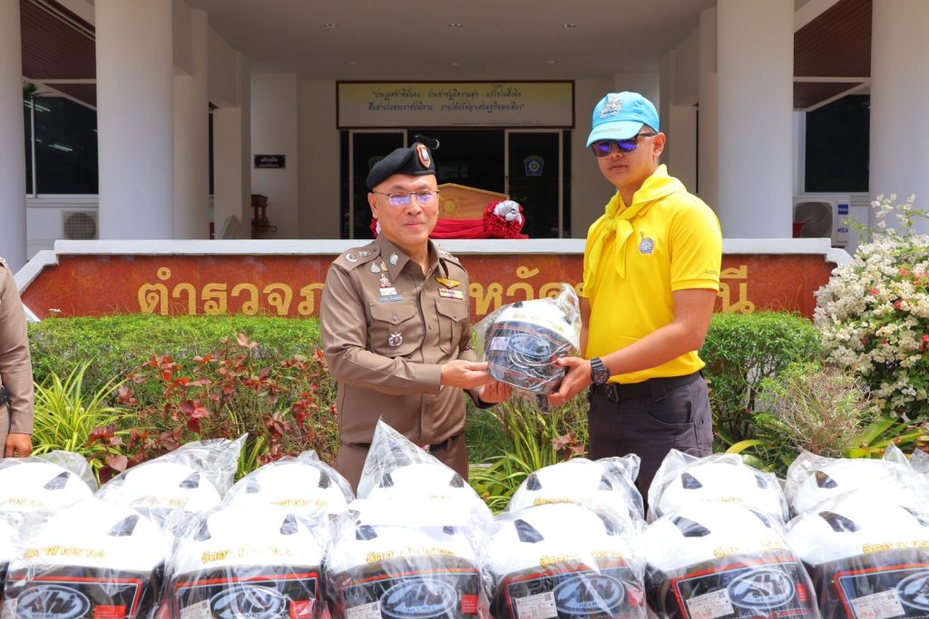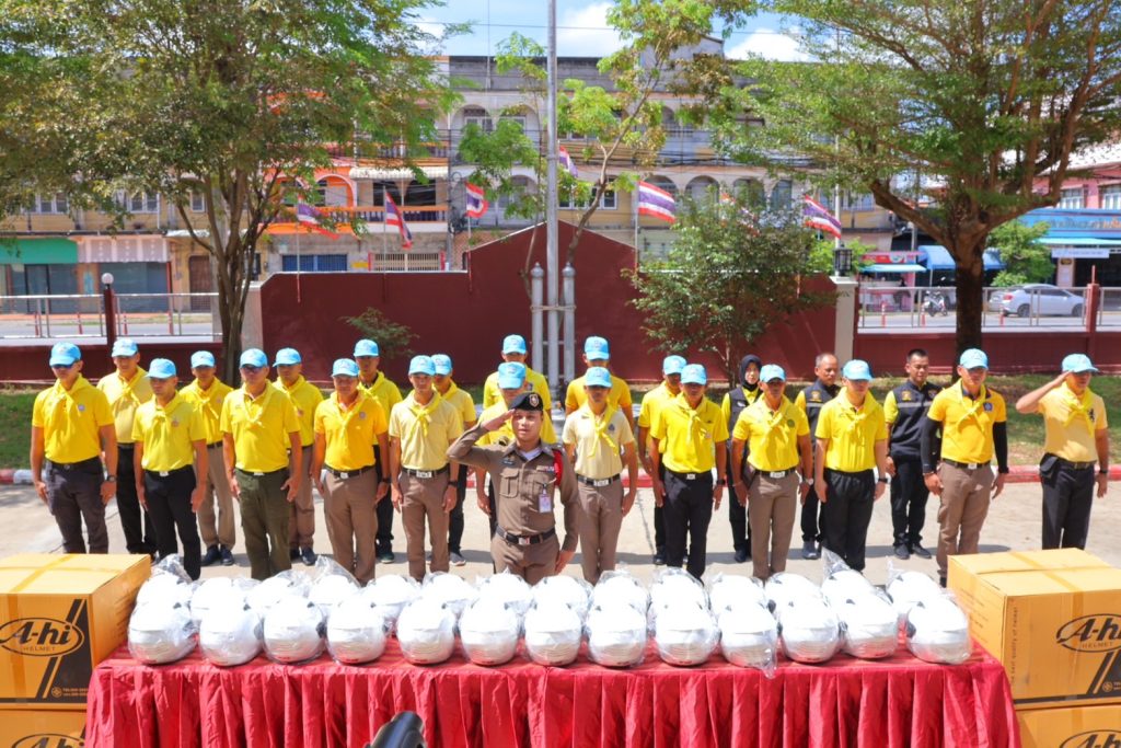 วันที่ 9 เม.ย.68 เวลา 11.00 น. พล.ต.ต.สันทัศน์ เชื้อพุฒตาล ผบก.ภ.จว.ปัตตานี, พ.ต.อ.สิทธิพงษ์ หัสรังษี รอง ผบก.ภ.จว.ปัตตานี พร้อมข้าราชการตำรวจจิตอาสาในสังกัด ภ.จว.ปัตตานี ร่วมแจกจ่ายหมวกนิรภัย ตามโครงการ