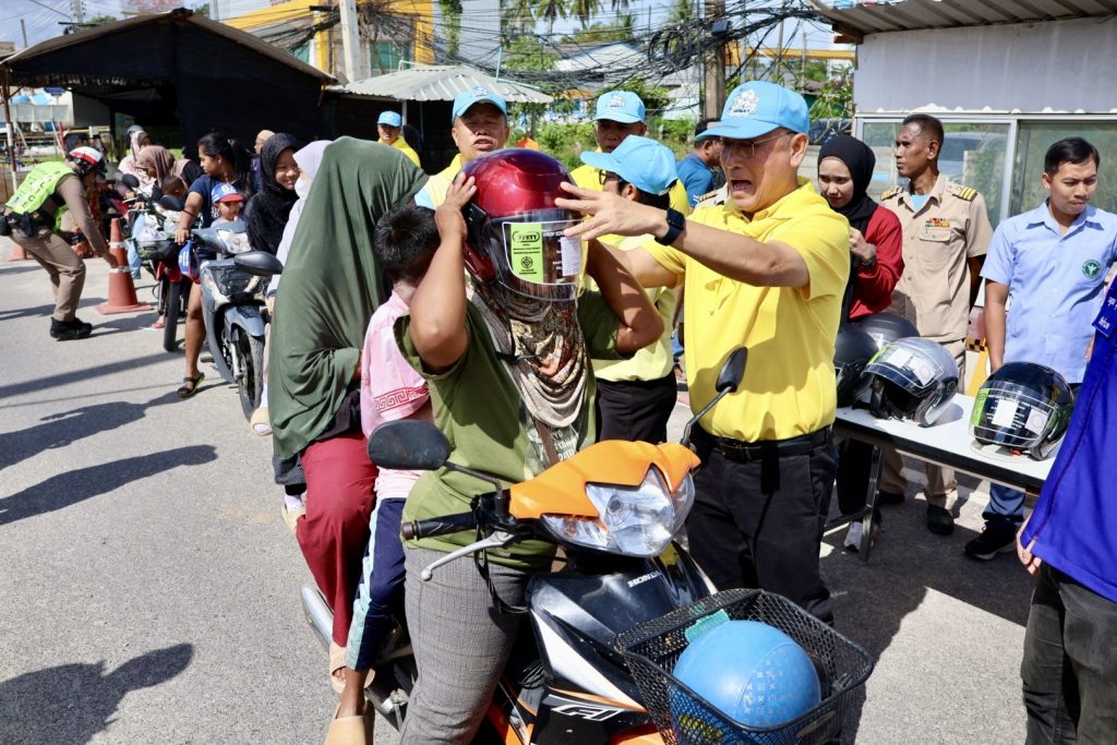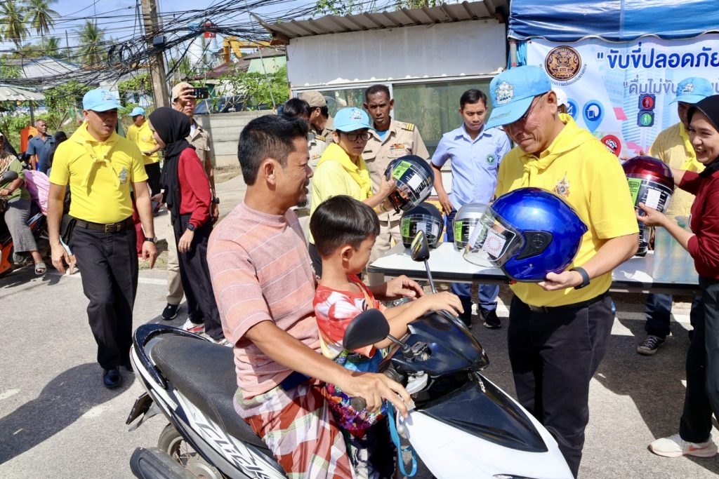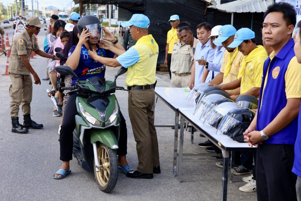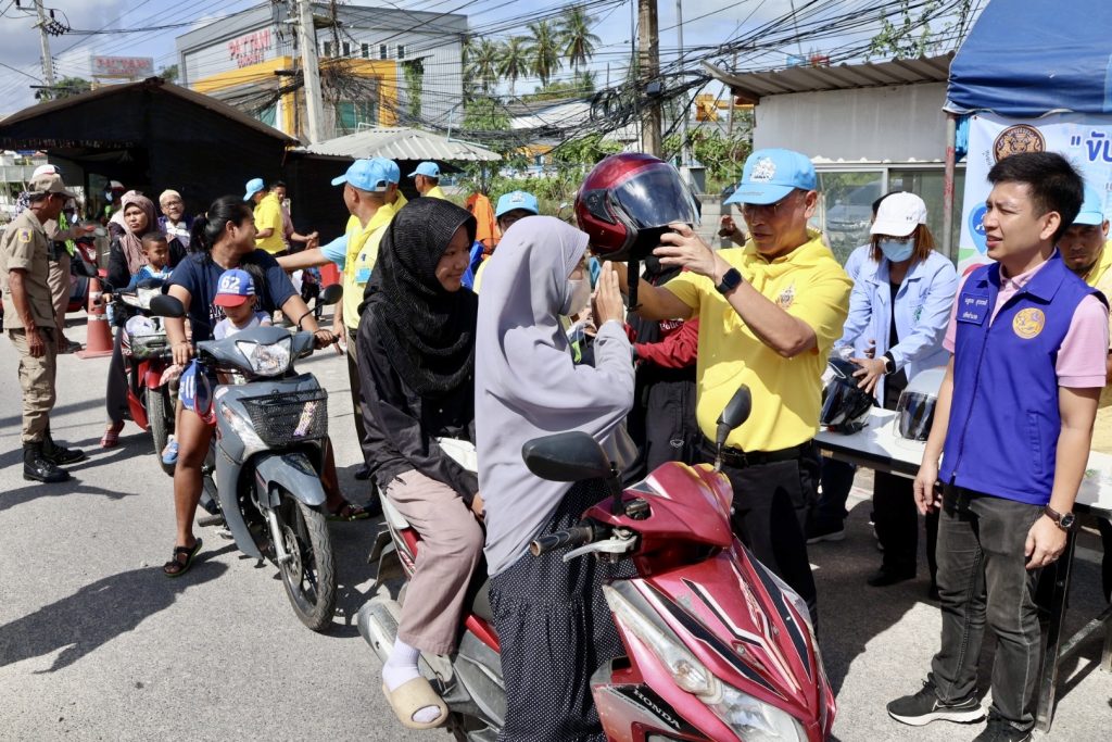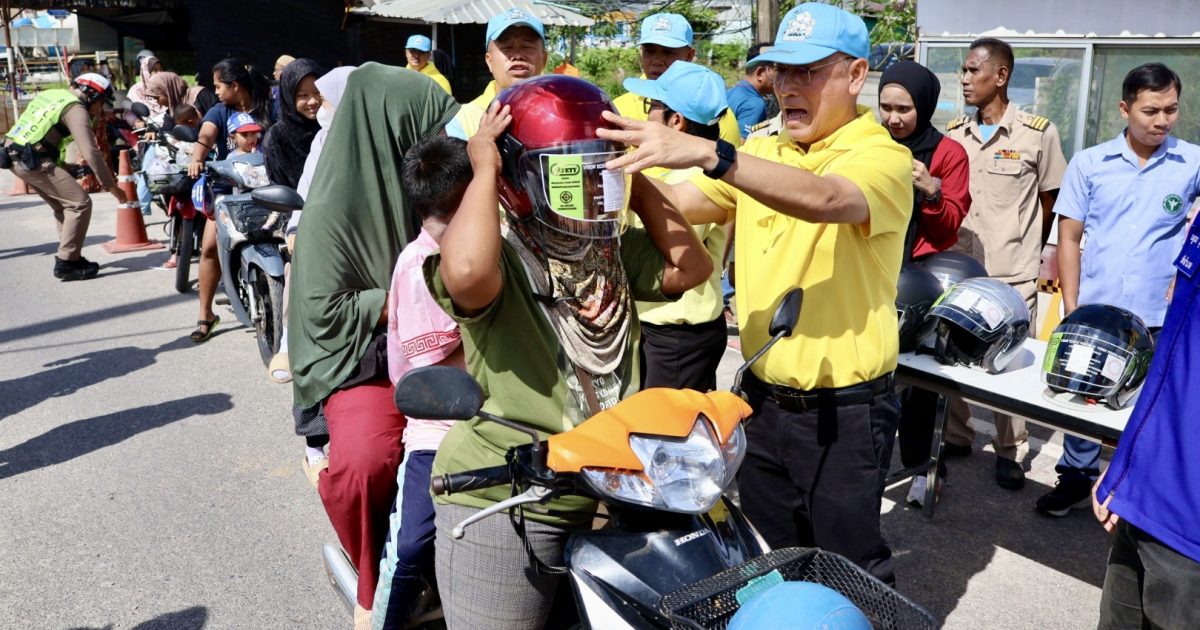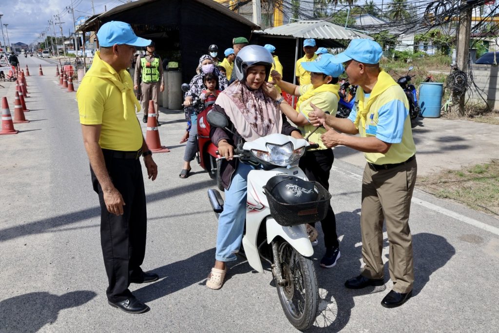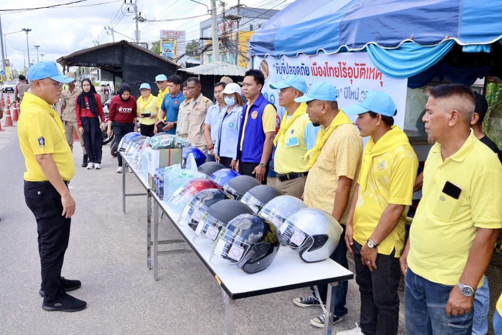 วันที่ 28 ธ.ค.67 เวลา 10.00 น. พล.ต.ต.สันทัศน์ เชื้อพุฒตาล ผบก.ภ.จว.ปัตตานี, พ.ต.อ.ประยงค์ โคตรสาขา รอง ผบก.ภ.จว.ปัตตานี ร่วมแจกจ่ายหมวกนิรภัย ให้กับประชาชนในพื้นที่จังหวัดปัตตานี โดยแนะนำการขับขี่และ ประชาสัมพันธ์ ตามโครงการจิตอาสาจราจร รณรงค์การขับขี่ปลอดภัย สวมหมวกนิรภัย เพื่อลดอุบัติเหตุจราจรทางบก ในช่วงเทศกาลปีใหม่ พ.ศ.2568 ณ จุดตรวจปัตตานีคอนกรีต