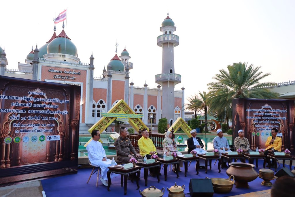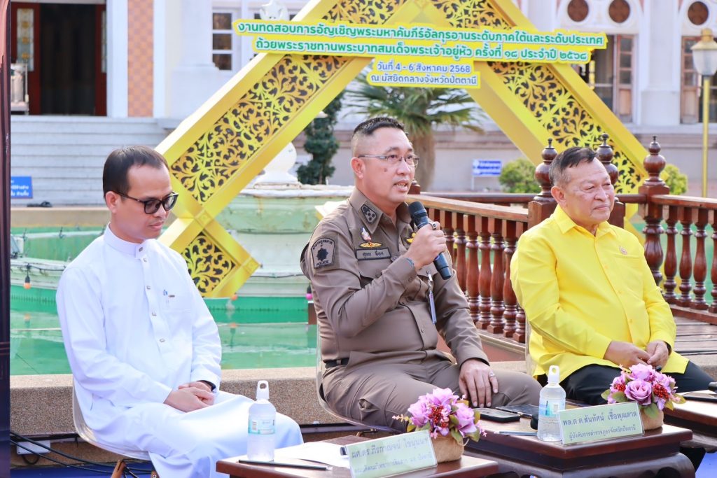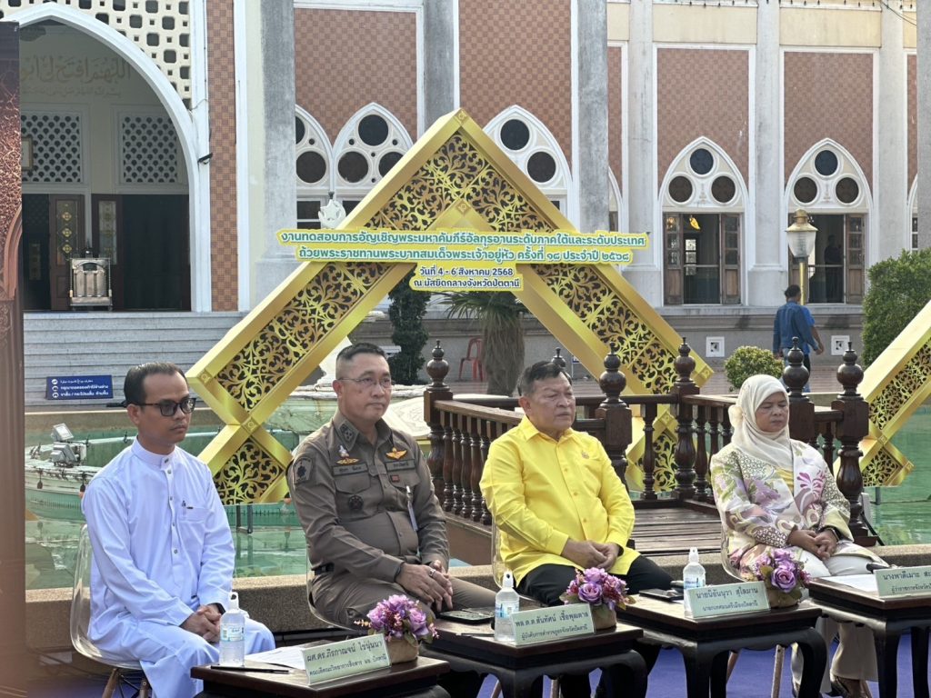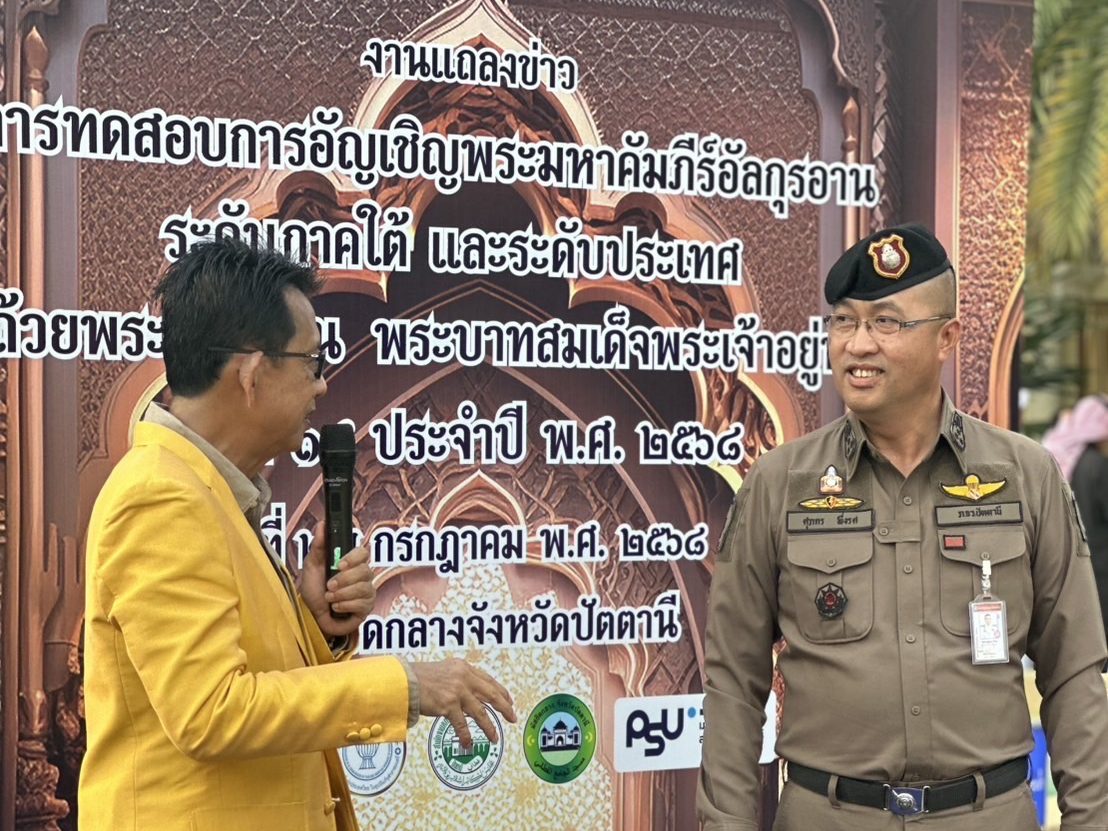 วันที่ 29 ก.ค.68 เวลา 16.30 น. พ.ต.อ.ศุภกร พึ่งรศ รอง ผบก.ภ.จว.ปัตตานี ร่วมแถลงข่าวเตรียมจัดงานทดสอบการอัญเชิญพระมหาคัมภีร์อัลกุรอาน ระดับภาคใต้และระดับประเทศ ถ้วยพระราชทานพระบาทสมเด็จพระเจ้าอยู่หัว ครั้งที่ 18 ประจำปี 2568 ณ มัสยิดกลางจังหวัดปัตตานี