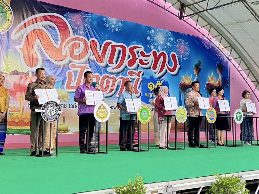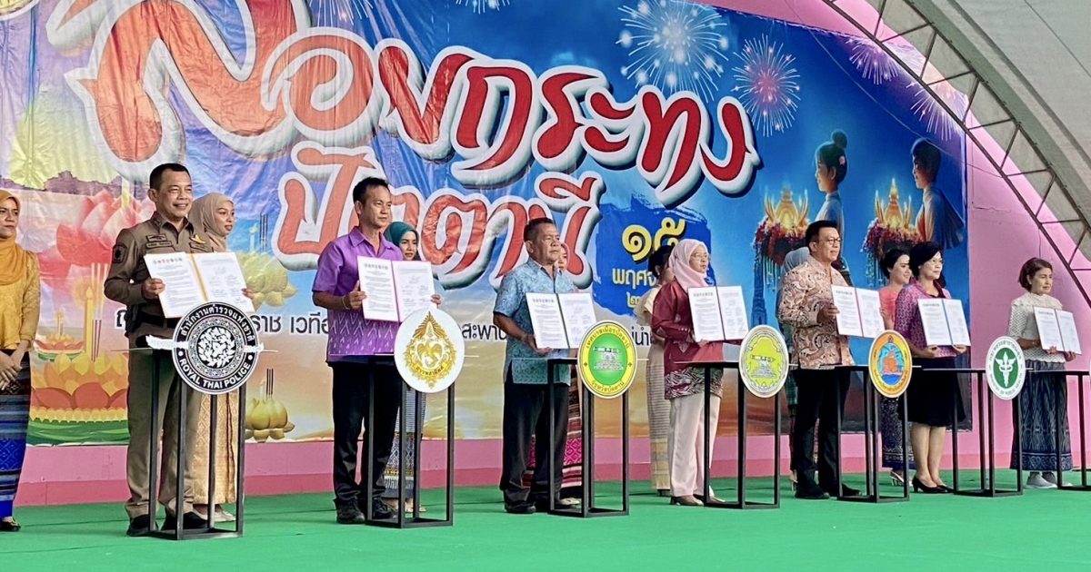 เมื่อวันที่ 12 พ.ย.67 เวลา 16.30 น. พ.ต.อ.พงษ์พันธ์ จันทรอาภา รอง ผบก.ภ.จว.ปัตตานี ร่วมแถลงข่าวและลงนามบันทึกข้อตกลง (MOU) โครงการลอยกระทงรักษ์สิ่งแวดล้อม ปลอดเหล้า ปลอดบุหรี่ ประจำปี 2567 โดยมี นางพาตีเมาะ สะดียามู ผู้ว่าราชการจังหวัดปัตตานี เป็นประธาน ณ ลานอเนกประสงค์เวทีริมแม่น้ำปัตตานี