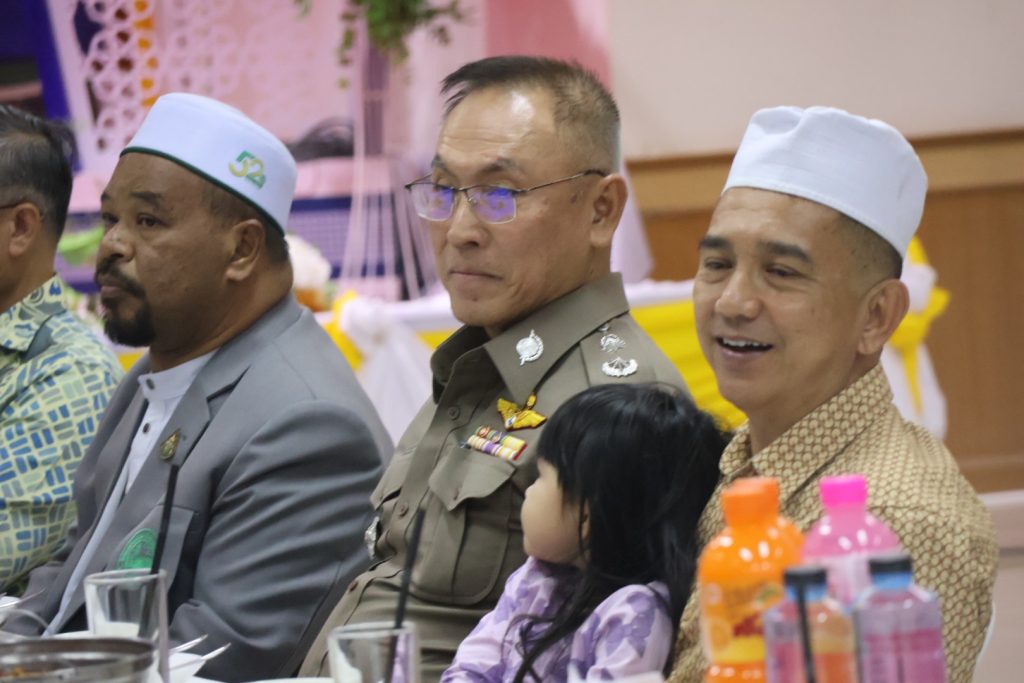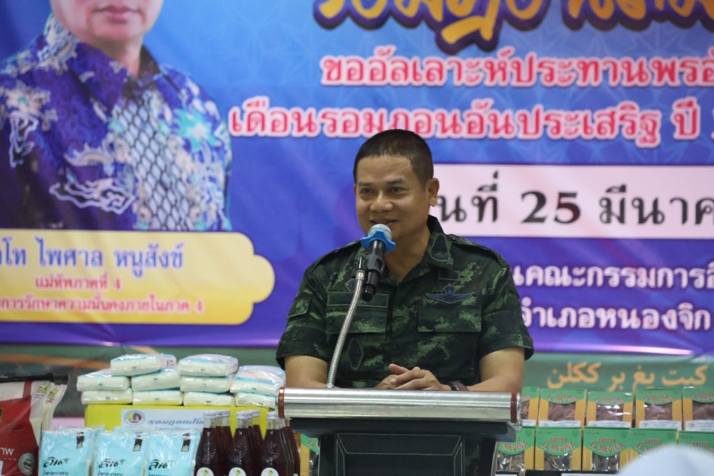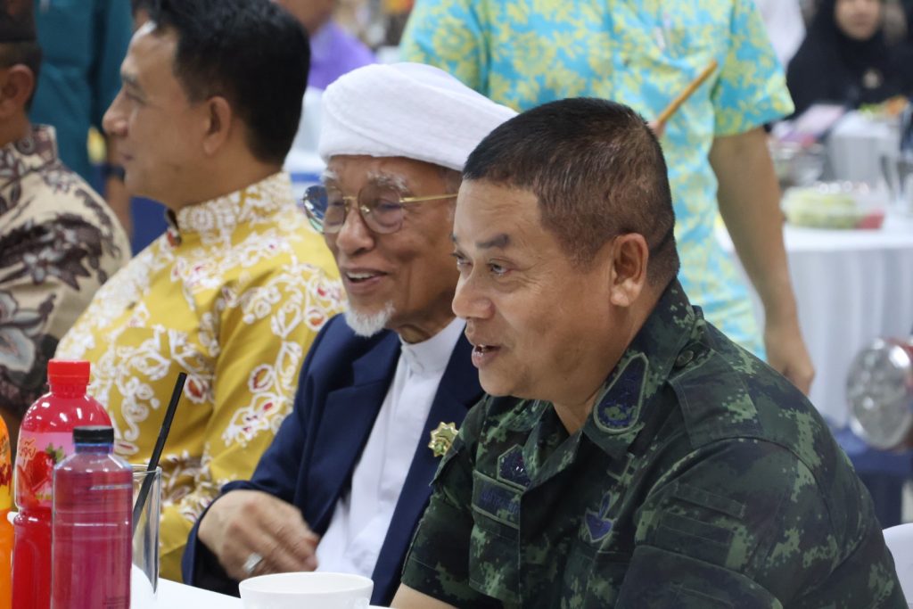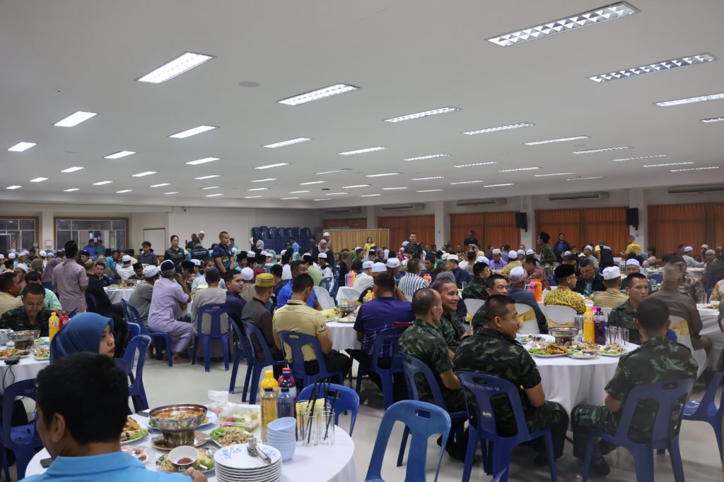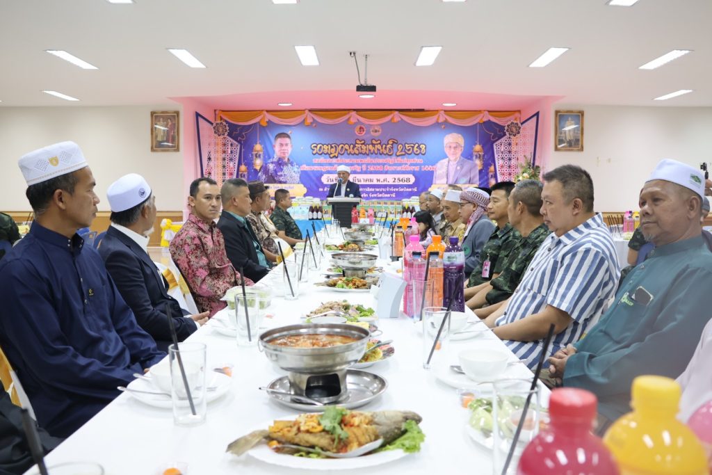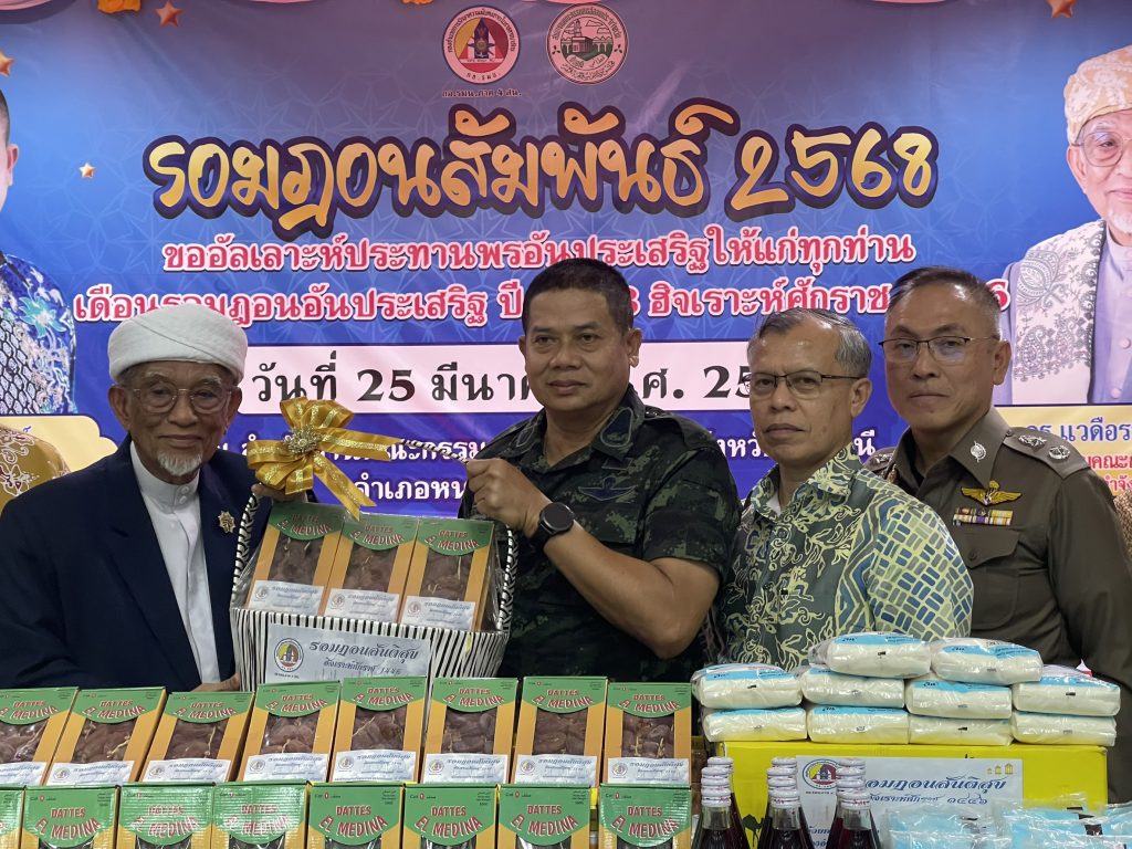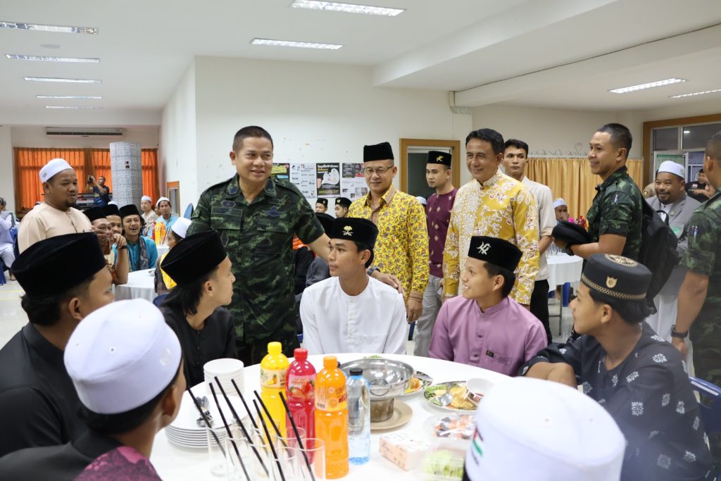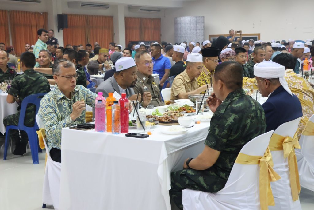 วันที่ 25 มี.ค.68 เวลา 17.30 – 19.30 น. พล.ต.ขจรศักดิ์ อินทร์ทอง ผบ.ฉก.ปัตตานี, พล.ต.ต.สันทัศน์ เชื้อพุฒตาล ผบก.ภ.จว.ปัตตานี, ว่าที่ พ.ต.อ.ฟาฮามี เฮ็งปิยา ผกก.ปพ.ภ.จว.ปัตตานี/ผบ.ฉก.ตร.ปัตตานี 92 ร่วมให้การต้อนรับ พล.ท.ไพศาล หนูสังข์ แม่ทัพภาคที่ 4/ผอ.รมน.ภาค 4 และคณะ ณ สนาม ฮ. ค่ายอิงคยุทธบริหาร อ.หนองจิก จว.ปัตตานี และร่วมกิจกรรมละศีลอดโครงการส่งเสริมสังคมพหุวัฒธรรมที่เข้มแข็ง (รอมฎอนสัมพันธ์ ประจำปี 2568) โดยมี ดร.แวดือราแม มะมิงจิ ประธานคณะกรรมการอิสลามประจำจังหวัดปัตตานี, ผู้นำท้องที่, ผู้นำท้องถิ่น, หน่วยกำลัง, ผู้นำศาสนา, และประชาชนในพื้นที่ เข้าร่วมกิจกรรมฯ ณ สำนักงานคณะกรรมการอิสลามประจำจังหวัดปัตตานี