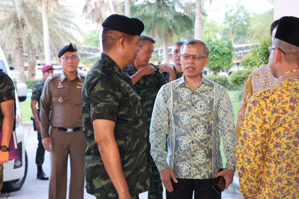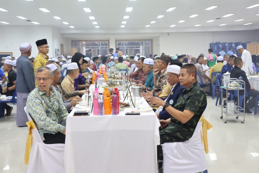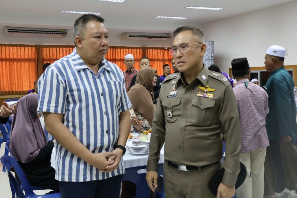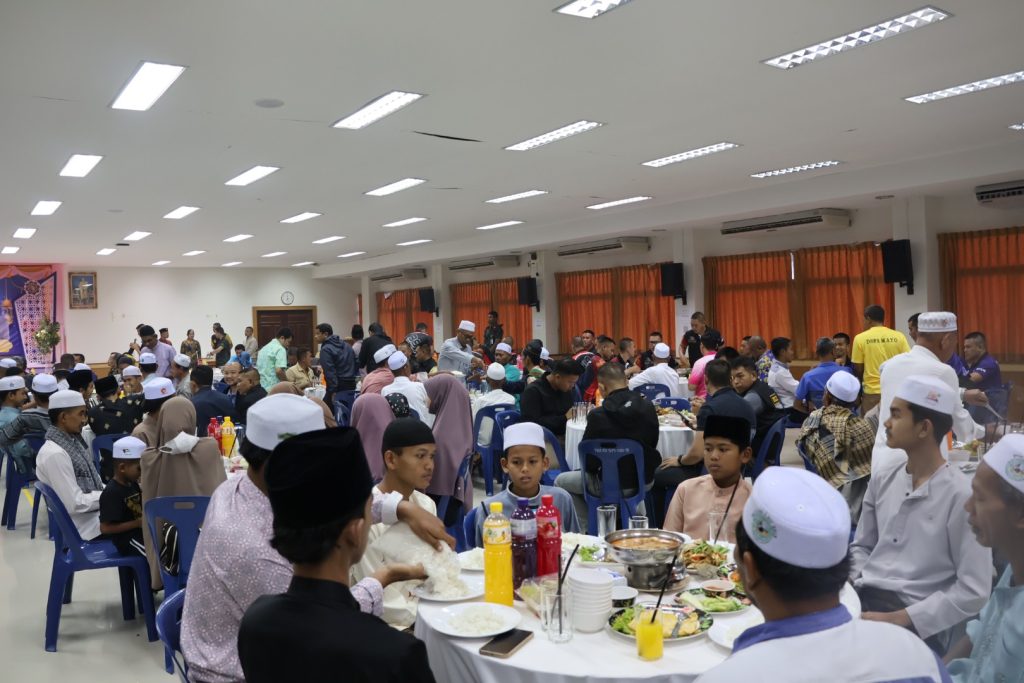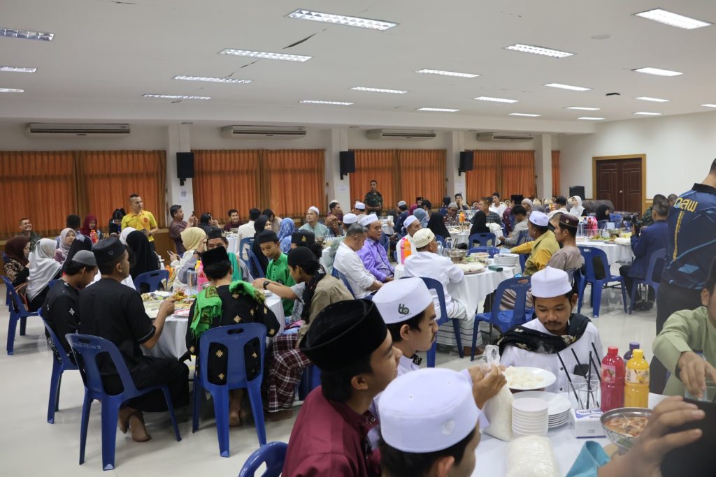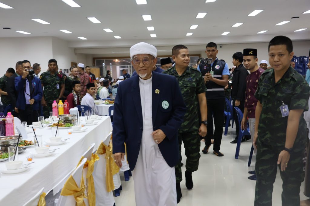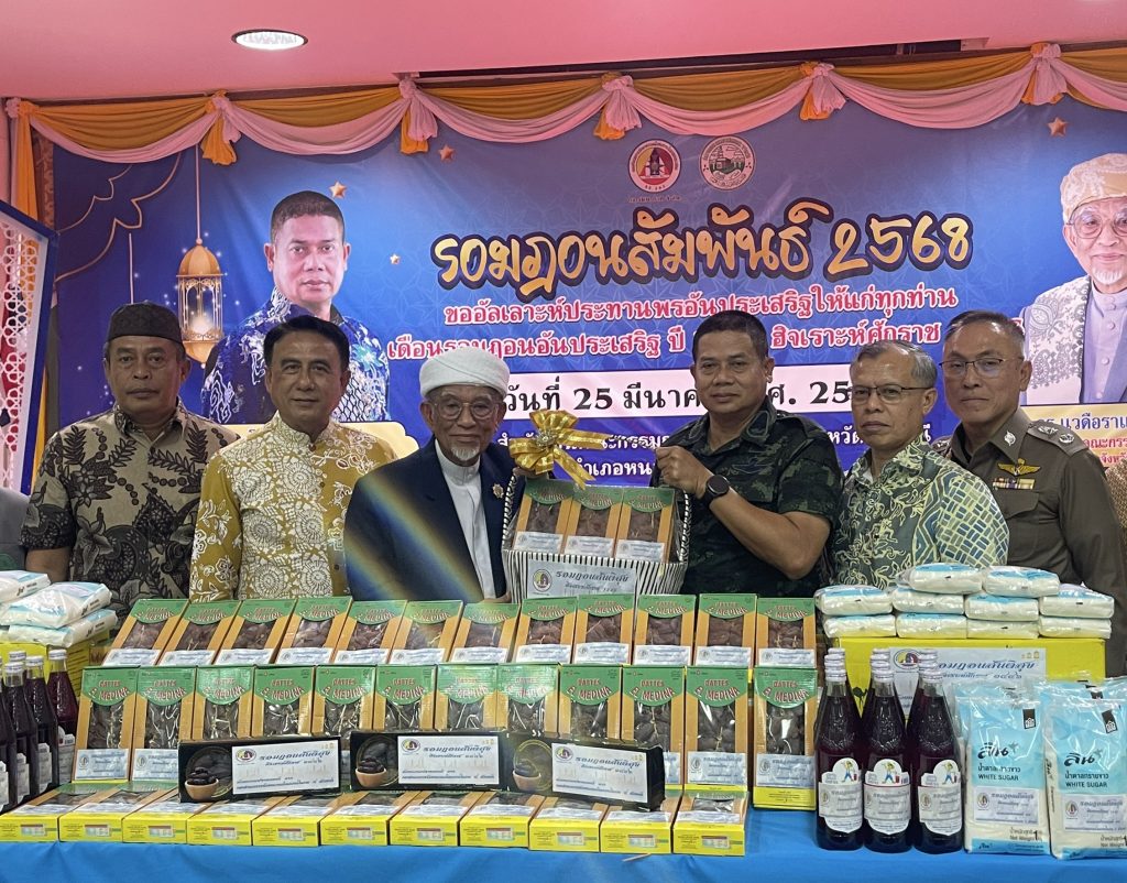 วันที่ 25 มี.ค.68 เวลา 17.30 – 19.30 น. พล.ต.ขจรศักดิ์ อินทร์ทอง ผบ.ฉก.ปัตตานี, พล.ต.ต.สันทัศน์ เชื้อพุฒตาล ผบก.ภ.จว.ปัตตานี, ว่าที่ พ.ต.อ.ฟาฮามี เฮ็งปิยา ผกก.ปพ.ภ.จว.ปัตตานี/ผบ.ฉก.ตร.ปัตตานี 92 ร่วมให้การต้อนรับ พล.ท.ไพศาล หนูสังข์ แม่ทัพภาคที่ 4/ผอ.รมน.ภาค 4 และคณะ ณ สนาม ฮ. ค่ายอิงคยุทธบริหาร อ.หนองจิก จว.ปัตตานี และร่วมกิจกรรมละศีลอดโครงการส่งเสริมสังคมพหุวัฒธรรมที่เข้มแข็ง (รอมฎอนสัมพันธ์ ประจำปี 2568) โดยมี ดร.แวดือราแม มะมิงจิ ประธานคณะกรรมการอิสลามประจำจังหวัดปัตตานี, ผู้นำท้องที่, ผู้นำท้องถิ่น, หน่วยกำลัง, ผู้นำศาสนา, และประชาชนในพื้นที่ เข้าร่วมกิจกรรมฯ ณ สำนักงานคณะกรรมการอิสลามประจำจังหวัดปัตตานี