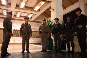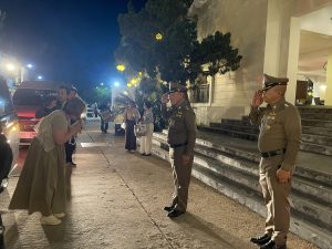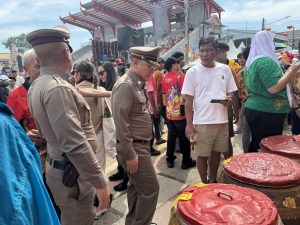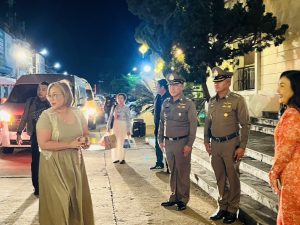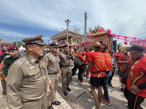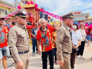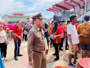 ต่อมาวันที่ 2 มี.ค.69 เวลา 13.30 น. พล.ต.ต.สันทัศน์ เชื้อพุฒตาล ผบก.ภ.จว.ปัตตานี, พ.ต.อ.เจฟฟรีย์ ไศลมานกุล ผกก.สภ.เมืองปัตตานี, พ.ต.อ.ฟาฮามี เฮ็งปิยา ผกก.ปพ.ภ.จว.ปัตตานี ร่วมดูแลความสงบเรียบร้อยและการรักษาความปลอดภัย รวมทั้งอำนวยความสะดวกแก่ ดร.หม่อมหลวงณฐภา กิติยากร (คุณน้ำผึ้ง) และคณะ ร่วมงาน กตัญญูคู่ฟ้า มหาสมโภชเจ้าแม่ลิ้มกอเหนี่ยวปัตตานี ประจำปี 2569 ณ ศาลเจ้าเล่งจูเกียง อ.เมือง จว.ปัตตานี