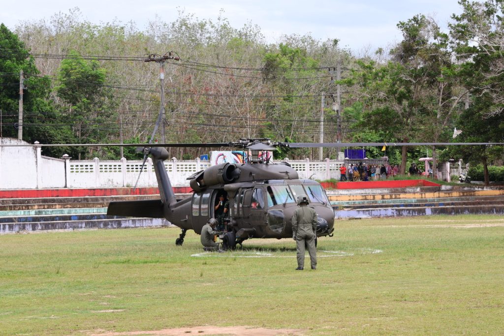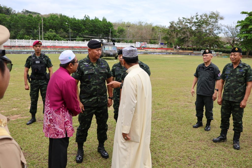 วันที่ 4 เม.ย.68 เวลา 13.00 น. พล.ต.ต.สันทัศน์ เชื้อพุฒตาล ผบก.ภ.จว.ปัตตานี, พ.ต.อ.มุสตอพา มะนิ ผกก.สภ.โคกโพธิ์, พ.ต.อ.ชาญศราวุธ แสงอรุณ ผกก.สภ.นาประดู่ ร่วมให้การต้อนรับ พล.อ.พนา แคล้วปลอดทุกข์ ผบ.ทบ. และคณะ เดินทางมาปฏิบัติภารกิจในพื้นที่ และร่วมปฏิบัติภารกิจในพื้นที่จังหวัดปัตตานี จนเสร็จสิ้นภารกิจพื้นที่ อ.โคกโพธิ์ ณ สนาม ฮ.ชั่วคราว ร.ร.มูลนิธิอาซิซสถาน