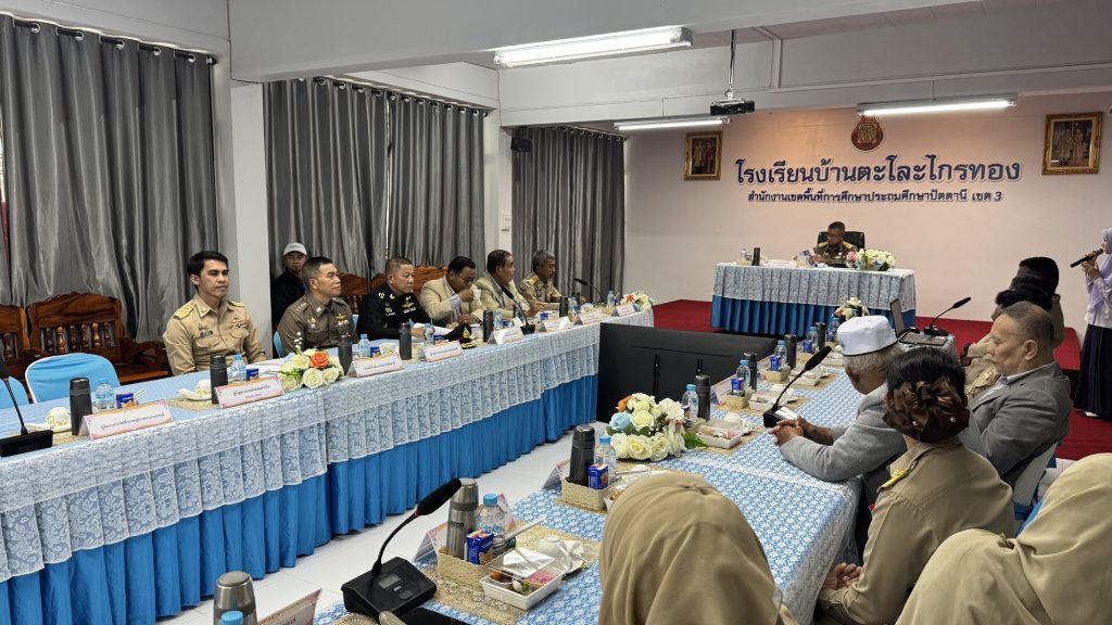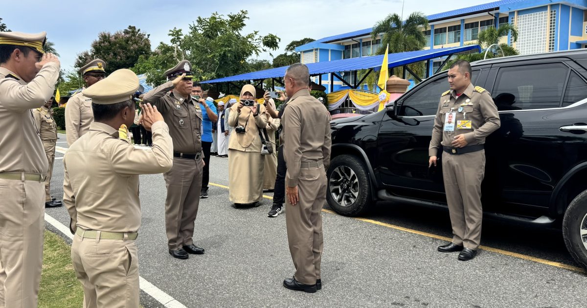 เมื่อวันที่ 3 ก.ย.68 ตั้งแต่เวลา 13.20 น. พ.ต.อ.กองอรรถ สุวรรณขำ รอง ผบก.ภ.จว.ปัตตานี, พ.ต.อ.พงษ์พันธ์ จันทรอาภา รอง ผบก.ภ.จว.ปัตตานี, พ.ต.อ.คมกฤช ศรีสงค์ รอง ผบก.ภ.จว.ปัตตานี ร่วมให้การต้อนรับ พล.อ.เฉลิมชัย สิทธิสาท องคมนตรี ในฐานะกรรมการโครงการกองทุนการศึกษา เดินทางมาเป็นประธานในพิธีมอบทุนการศึกษาพระราชทาน โครงการกองทุนการศึกษา ประจำปี 2568 พร้อมตรวจเยี่ยมรับฟังผลการดำเนินงานของโรงเรียนในโครงการฯ ณ โรงเรียนบ้านตะโละไกรทอง อ.ไม้แก่น และ โรงเรียนบ้านวังกว้าง อ.แม่ลาน