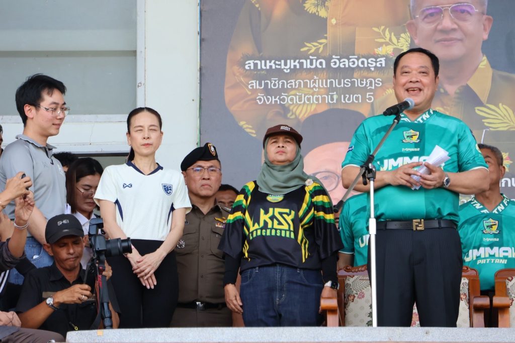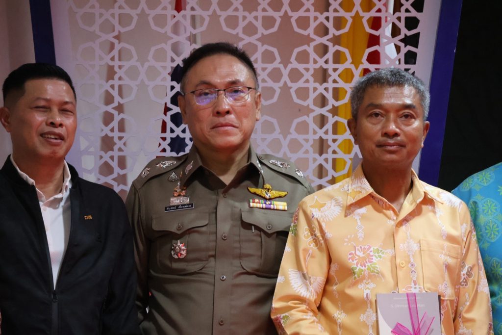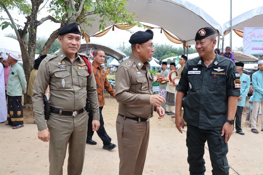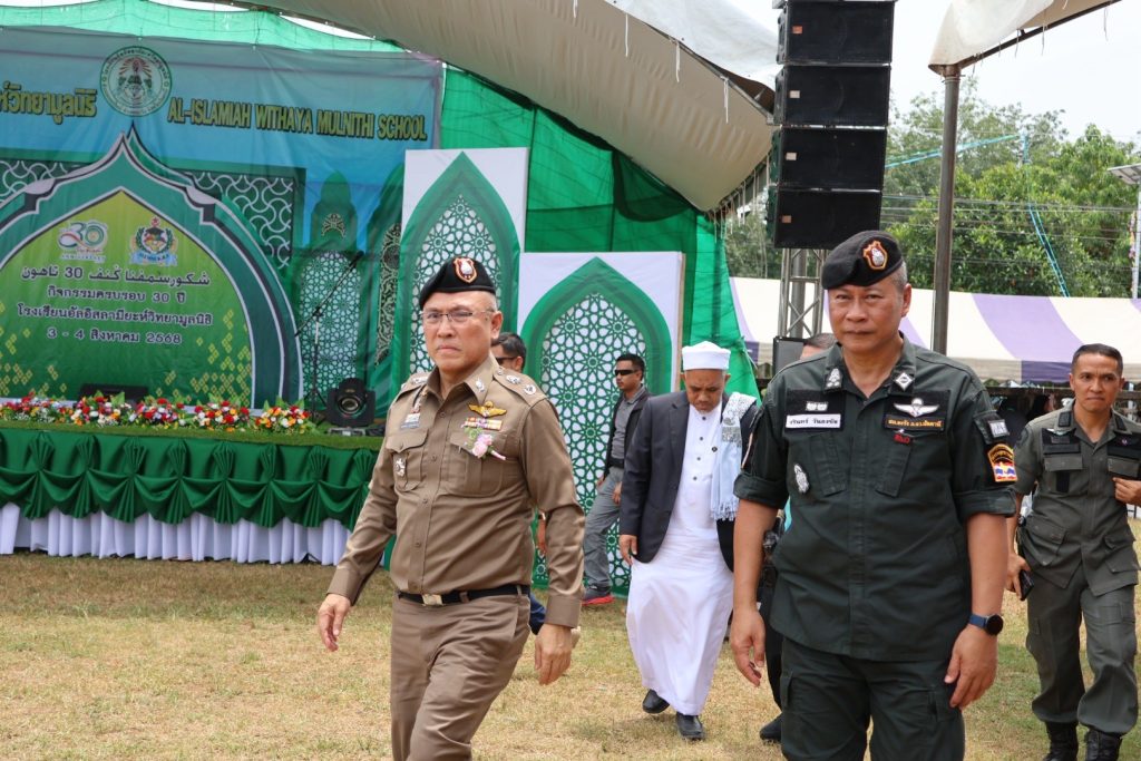 จากนั้นวันที่ 3 ส.ค.68 เวลา 09.00 – 14.00 น. พล.ต.ต.สันทัศน์ เชื้อพุฒตาล ผบก.ภ.จว.ปัตตานี, พ.ต.อ.สิทธิพงษ์ หัสรังษี รอง ผบก.ภ.จว.ปัตตานี, พ.ต.อ.พัฒนชัย ปาละสุวรรณ ผกก.สภ.หนองจิก, พ.ต.อ.วรินทร์ วันธงชัย ผกก.สภ.ยะรัง ร่วมให้การต้อนรับ พ.ต.อ.ทวี สอดส่อง รัฐมนตรีว่าการกระทรวงยุติธรรม เป็นประธานพิธีเปิดกิจกรรมสัมนาเสริมสร้างความเข้มแข็งภาษาและวัฒนธรรมเพื่อสร้างสันติสุขในจังหวัดชายแดนภาคใต้ และร่วมปฏิบัติภารกิจในพื้นที่จนเสร็จสิ้นภารกิจ