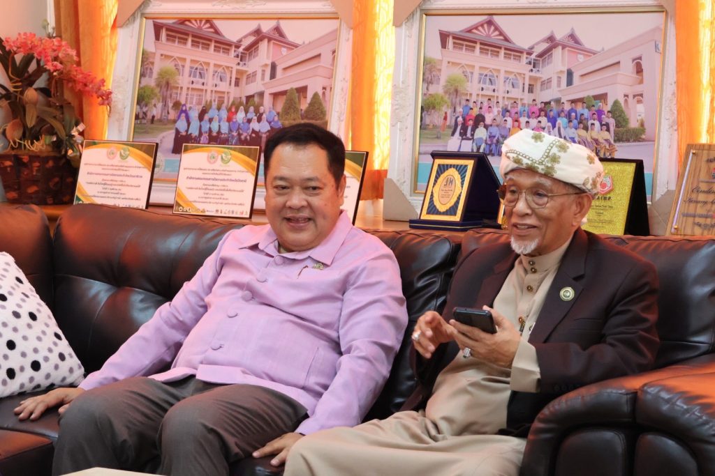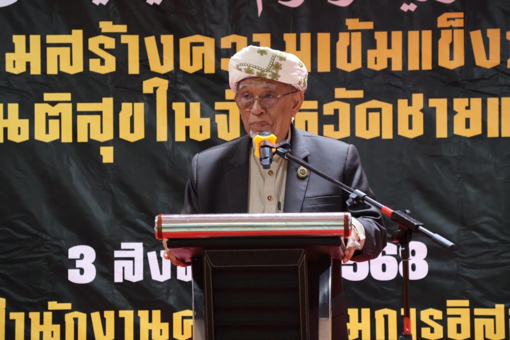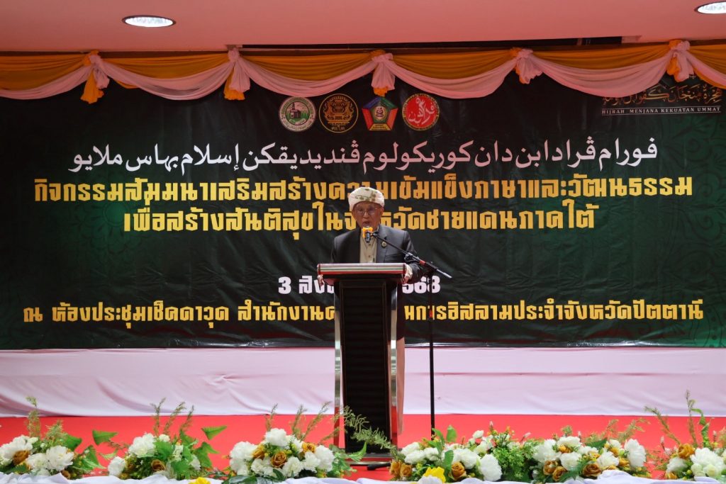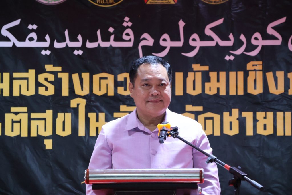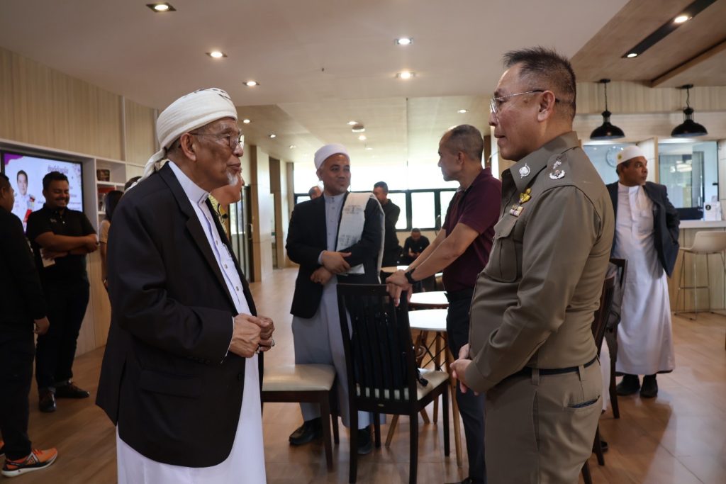 จากนั้นวันที่ 3 ส.ค.68 เวลา 09.00 – 14.00 น. พล.ต.ต.สันทัศน์ เชื้อพุฒตาล ผบก.ภ.จว.ปัตตานี, พ.ต.อ.สิทธิพงษ์ หัสรังษี รอง ผบก.ภ.จว.ปัตตานี, พ.ต.อ.พัฒนชัย ปาละสุวรรณ ผกก.สภ.หนองจิก, พ.ต.อ.วรินทร์ วันธงชัย ผกก.สภ.ยะรัง ร่วมให้การต้อนรับ พ.ต.อ.ทวี สอดส่อง รัฐมนตรีว่าการกระทรวงยุติธรรม เป็นประธานพิธีเปิดกิจกรรมสัมนาเสริมสร้างความเข้มแข็งภาษาและวัฒนธรรมเพื่อสร้างสันติสุขในจังหวัดชายแดนภาคใต้ และร่วมปฏิบัติภารกิจในพื้นที่จนเสร็จสิ้นภารกิจ