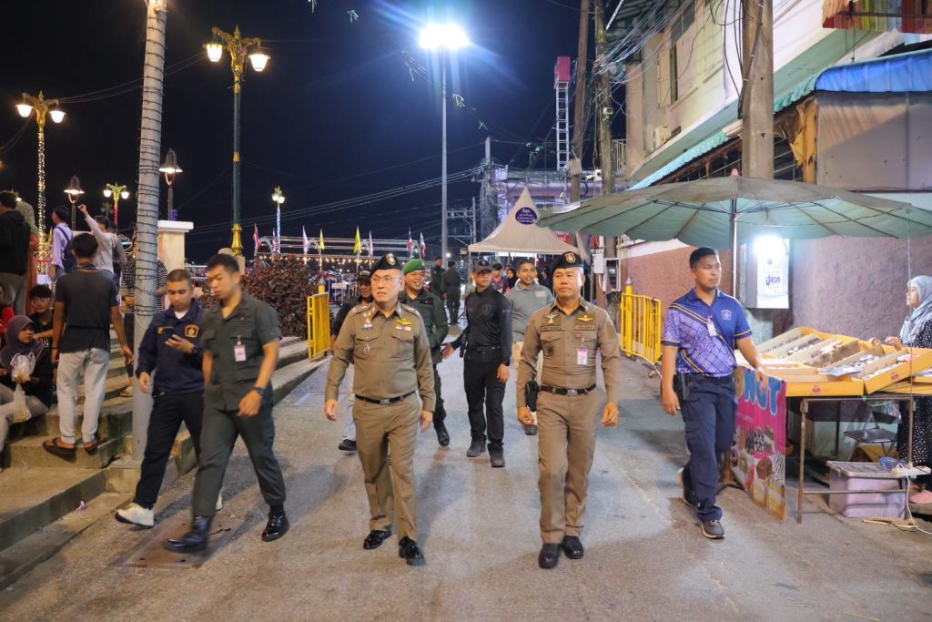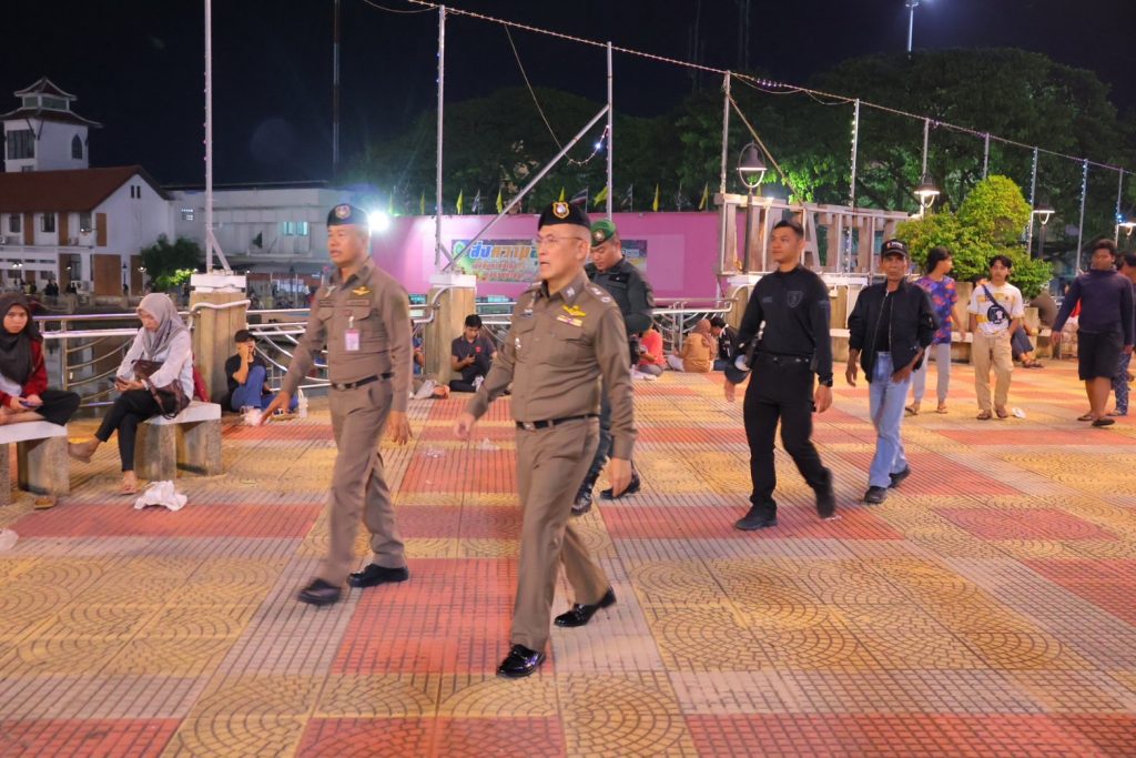 วันที่ 31 ธ.ค.67 เวลา 23.00 น. พล.ต.ต.สันทัศน์ เชื้อพุฒตาล ผบก.ภ.จว.ปัตตานี, พ.ต.อ.ประยงค์ โคตรสาขา รอง ผบก.ภ.จว.ปัตตานี, พ.ต.อ.กองทัพ เสนาทิพย์ ผกก.ปพ.ภ.จว.ปัตตานี, พ.ต.อ.เจฟฟรีย์ ไศลมานกุล ผกก.สภ.เมืองปัตตานี ลงพื้นที่ตรวจตราความเรียบร้อยภายในงาน “PATTANI COUNTDOWN 2025” ถนนคนเดิน พาเพลินปัตตานี เพื่อความปลอดภัยในชีวิตและทรัพย์สินของประชาชน มุ่งสร้างความมั่นใจและความปลอดภัยให้ผู้เข้าร่วมงาน ณ บริเวณริมแม่น้ำปัตตานี