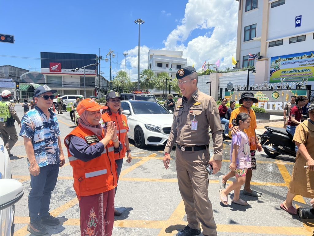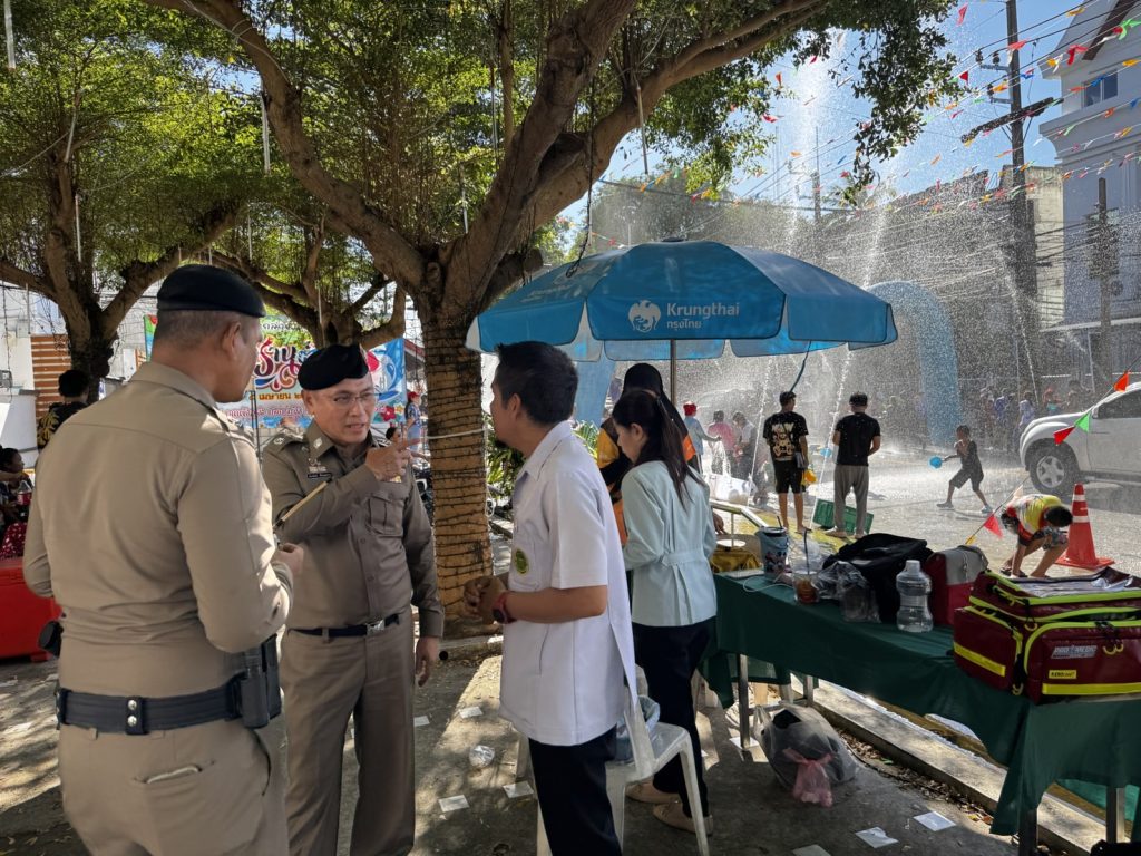 วันที่ 13 เม.ย.68 พล.ต.ต.สันทัศน์ เชื้อพุฒตาล ผบก.ภ.จว.ปัตตานี, พ.ต.อ.ศุภกร พึ่งรศ รอง ผบก.ภ.จว.ปัตตานี ลงพื้นที่ตรวจเยี่ยมเจ้าหน้าที่ตำรวจ และตรวจสอบความเรียบร้อย การจัดงานประเพณีสงกรานต์ เปิดถนนข้าวยำสาดน้ำคลายร้อน อุโมงค์น้ำพุ