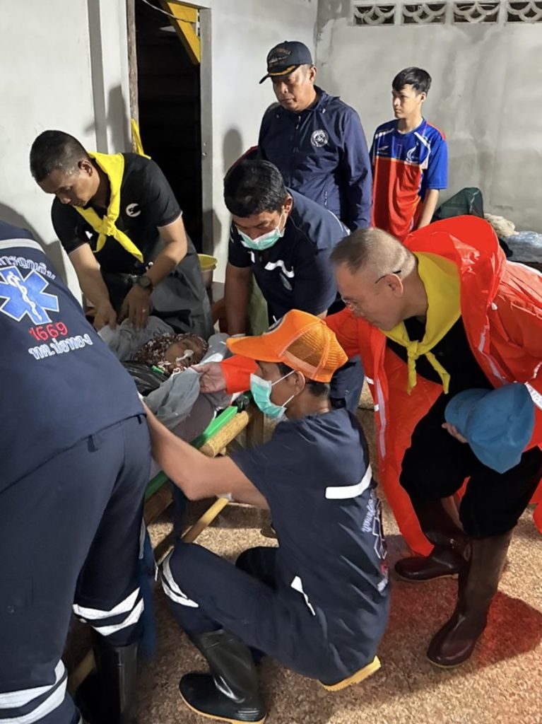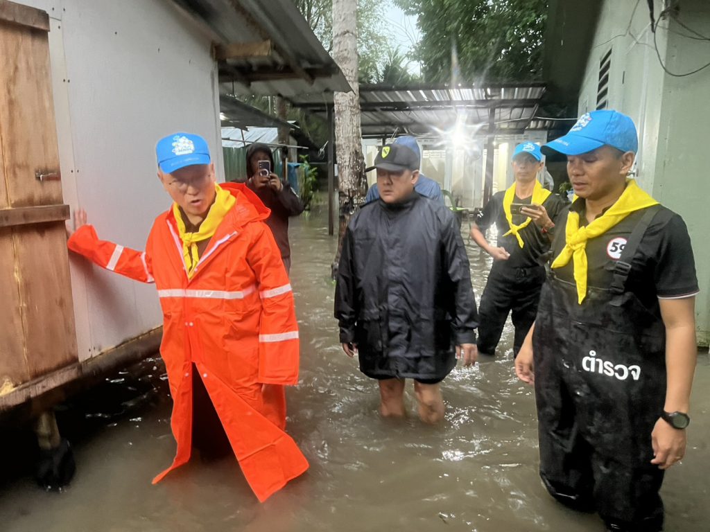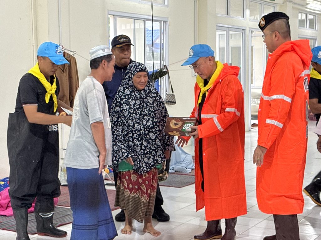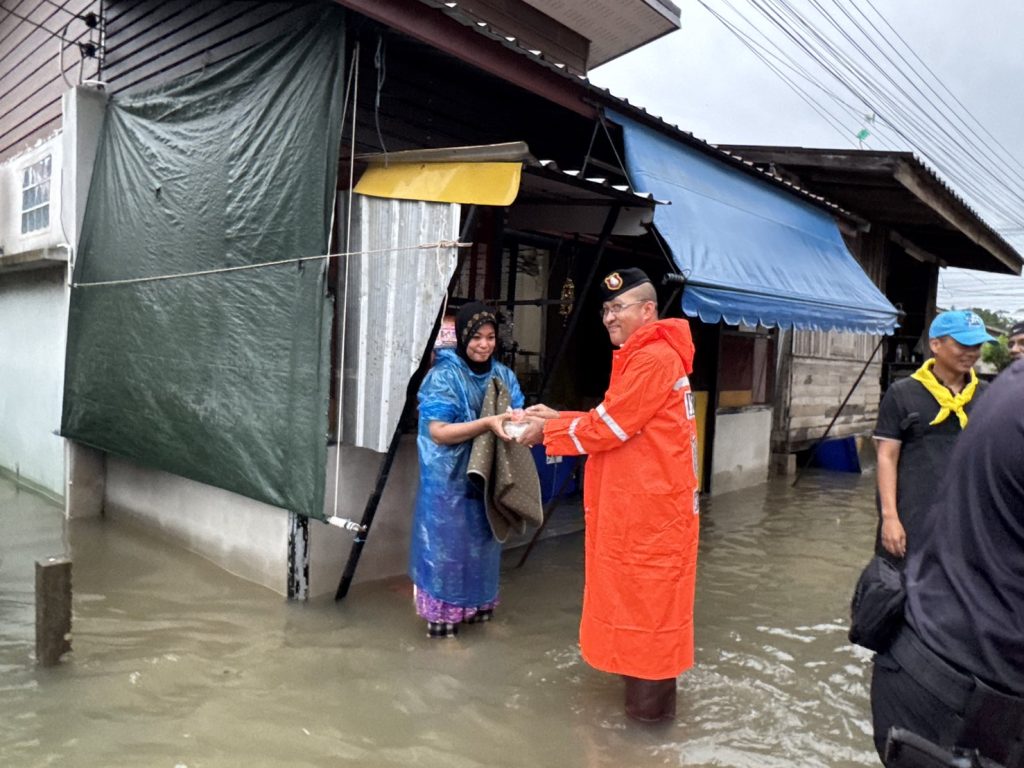 เมื่อวันที่ 23 พ.ย.68 เวลา 15.30 – 17.00 น. พล.ต.ท.ปิยะวัฒน์ เฉลิมศรี ผบช.ภ.9 มอบหมายให้ พล.ต.ต.สันทัศน์ เชื้อพุฒตาล ผบก.ภ.จว.ปัตตานี, พ.ต.อ.ศุภกร พึ่งรศ รอง ผบก.ภ.จว.ปัตตานี, พ.ต.อ.พัฒนชัย ปาละสุวรรณ ผกก.สภ.หนองจิก พร้อมทั้ง พ.จ.อ.มาหามุ หวังจิ นายกเทศมนตรีตำบลบ่อทอง และข้าราชการตำรวจ สภ.หนองจิก เดินทางลงพื้นที่เพื่อตรวจเยี่ยมและให้กำลังใจชาวบ้านที่ได้รับผลกระทบจากสถานการณ์อุทกภัย พร้อมทั้งมอบอาหารและสิ่งของอุปโภคบริโภคเพื่อบรรเทาความเดือดร้อนเบื้องต้น ทั้งนี้ได้ร่วมช่วยเหลือการขนย้ายผู้ป่วยติดเตียงภายในพื้นที่บ้านควนดิน ม.4 ต.บ่อทอง อ.หนองจิก จว.ปัตตานี เพื่อไปยังศูนย์พักพิงอุ่นไอรัก