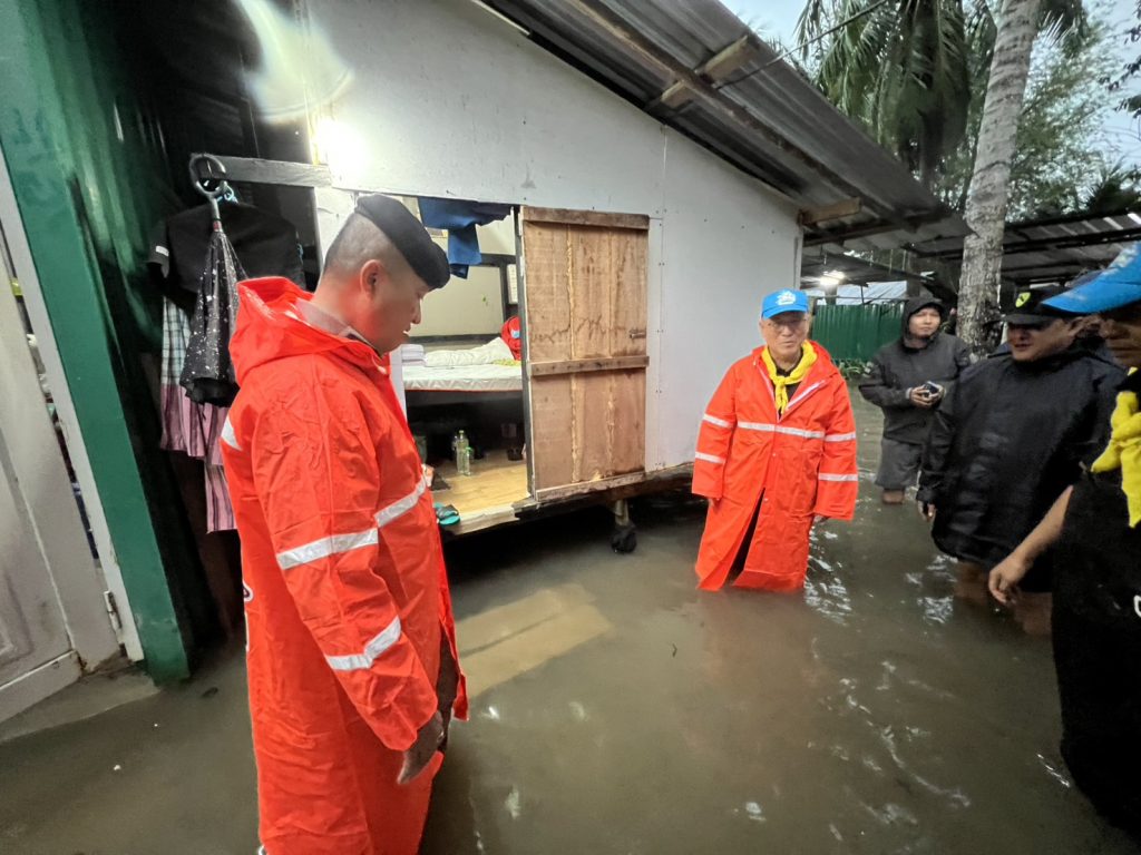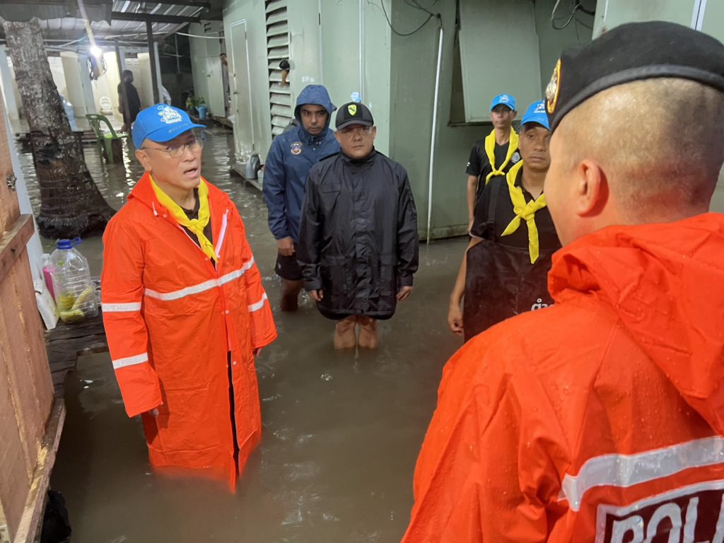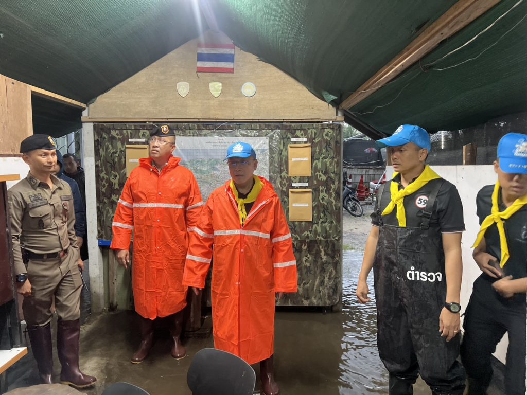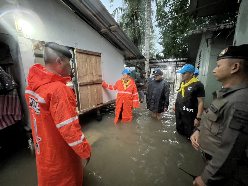 ต่อเนื่องเวลา 17.00 – 18.30 น. เดินทางลงพื้นที่เพื่อตรวจเยี่ยมและให้กำลังใจเจ้าหน้าที่ทั้ง 3 ฝ่ายที่ได้รับผลกระทบจากสถานการณ์อุทกภัย พร้อมทั้งมอบข้าวสารและสิ่งของอุปโภคบริโภคเพื่อบรรเทาความเดือดร้อนเบื้องต้น พร้อมทั้งตรวจเส้นทางการจราจรในถนนเส้น 43 ปัตตานีมุ่งหน้าไปหาดใหญ่ พื้นที่ มว.ฉก.นปพ.ปน.12 (เกาะหม้อแกง) ต.ท่ากำชำ อ.หนองจิก จว.ปัตตานี