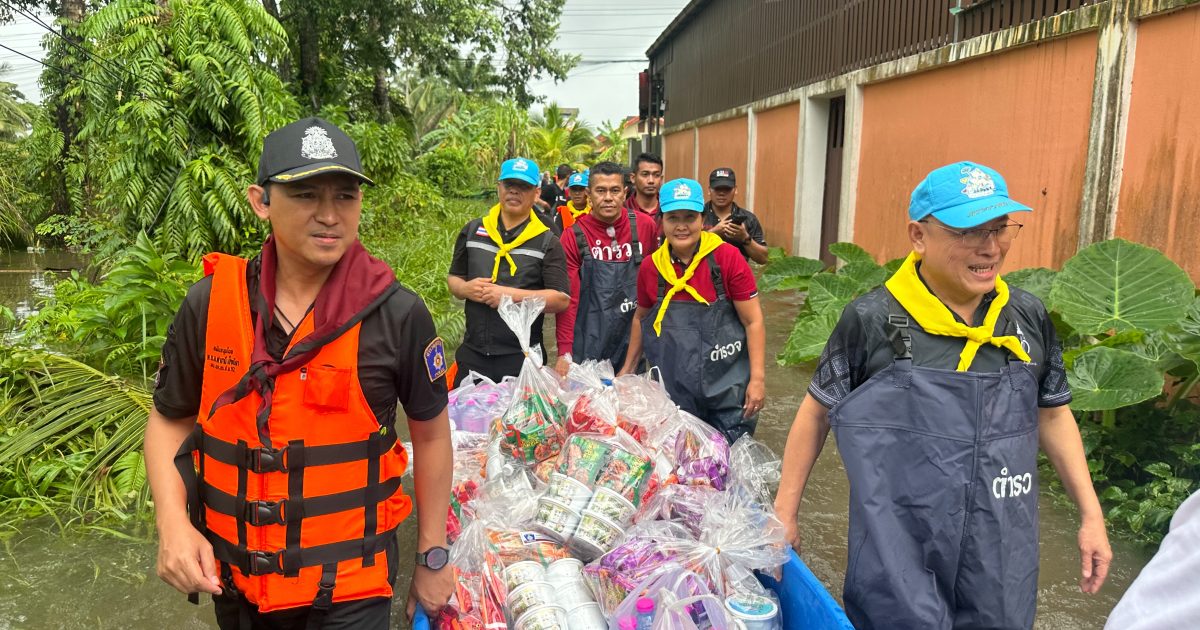 วันที่ 25 พ.ย.68 เวลาประมาณ 13.30 – 16.30 น. ภายใต้อำนวยการสั่งการ พล.ต.ท.ปิยะวัฒน์ เฉลิมศรี ผบช.ภ.9 มอบหมายให้ พล.ต.ต.สันทัศน์ เชื้อพุฒตาล ผบก.ภ.จว.ปัตตานี, พ.ต.อ.ฟาฮามี เฮ็งปิยา ผกก.ปพ.ภ.จว.ปัตตานี, พ.ต.อ.ปิยาพรรณ ด้วงทอง ผกก.ฝอ.ภ.จว.ปัตตานี พร้อมด้วยข้าราชการตำรวจ ภ.จว.ปัตตานี, กก.ปพ.ภ.จว.ปัตตานี และ ฉก.ตร.ปัตตานี 92 ร่วมลงพื้นที่เยี่ยมเยียนให้กำลังใจและมอบสิ่งของบริโภคและน้ำดื่มแก่ประชาชนที่ประสบอุทกภัยในพื้นที่ชุมชนจะบังติกอ อ.เมือง จว.ปัตตานี