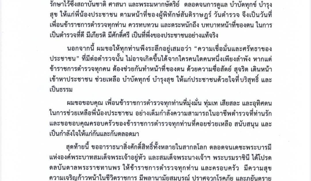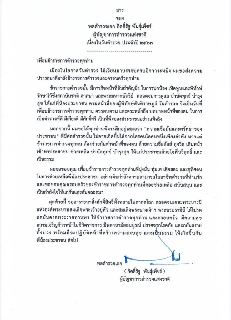 สาร ของ พล.ต.อ.กิตติ์รัฐ พันธุ์เพ็ชร์ ผบ.ตร. เนื่องในวันตำรวจ ประจำปี 2567 16 ตุลาคม 2024 โดย pattani / ข่าวประชาสัมพันธ์