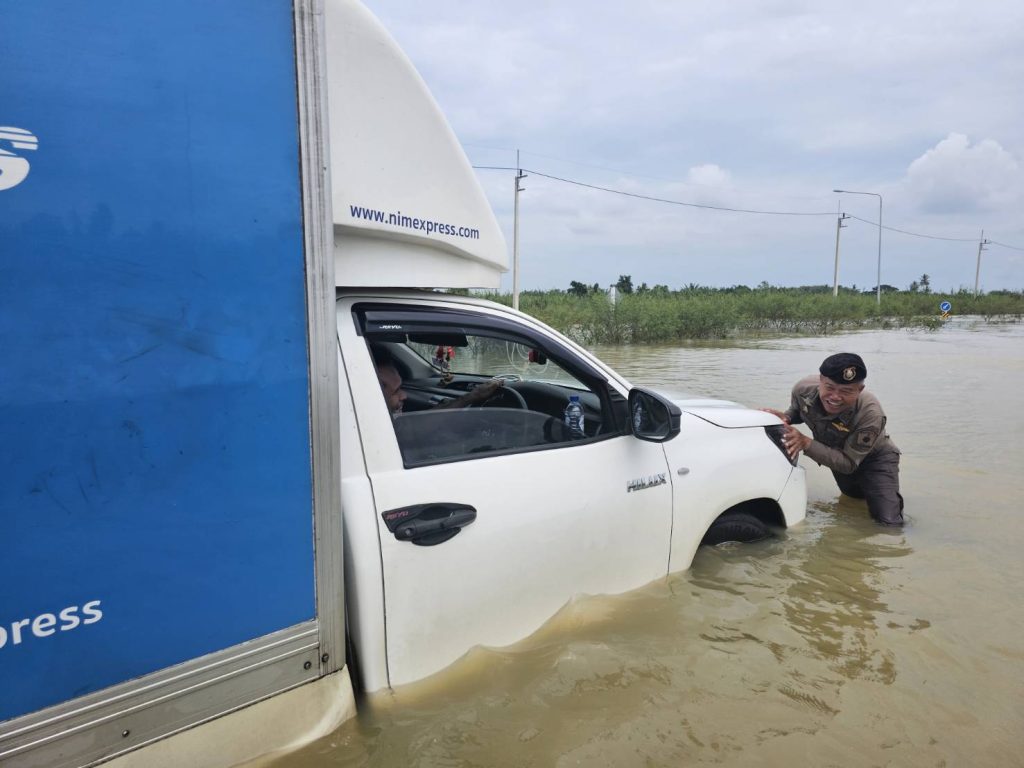 วันที่ 3 ธ.ค.67 เวลา 10.00 – 13.00 น. พ.ต.อ.ประยงค์ โคตรสาขา รอง ผบก.ภ.จว.ปัตตานี พร้อมด้วยเจ้าหน้าที่ตำรวจจราจร สภ.เมืองปัตตานี ร่วมสำรวจเส้นทางที่น้ำไม่ท่วมสามารถสัญจร และอำนวยความสะดวกการจราจรให้กับ