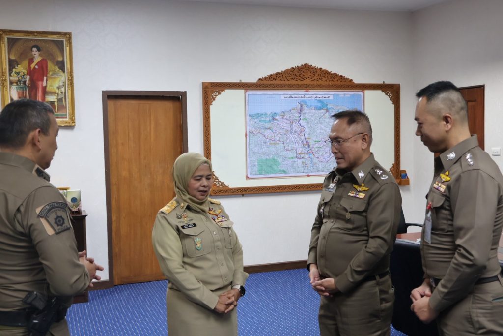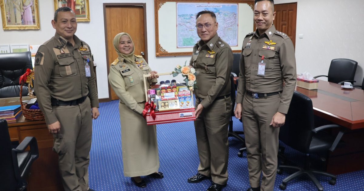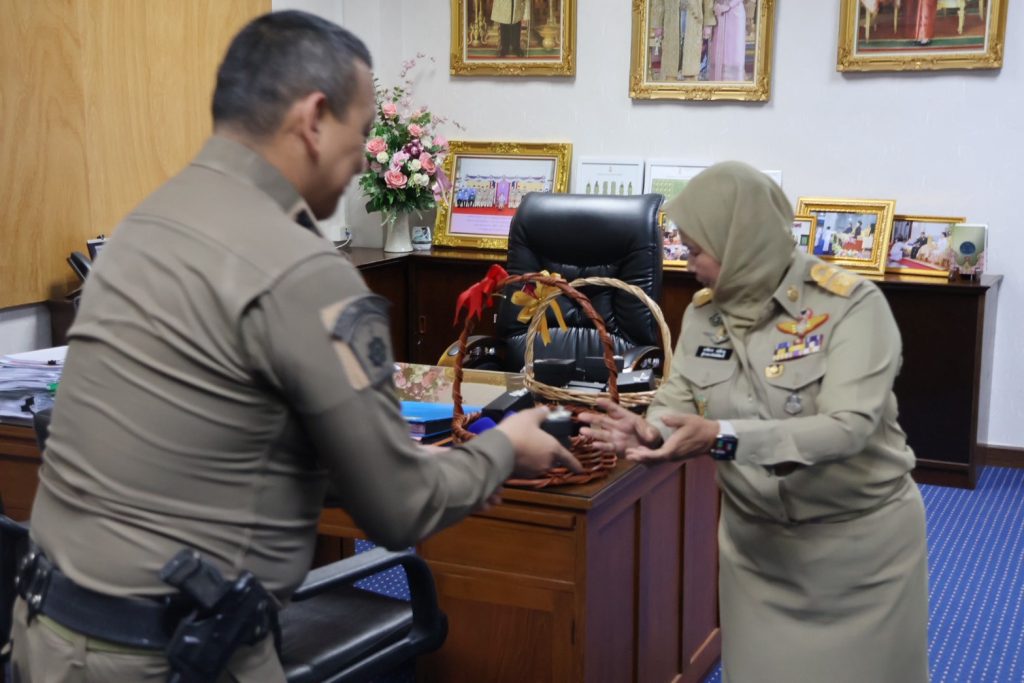 วันที่ 6 ม.ค.69 เวลา 14.00 น. พล.ต.ต.สันทัศน์ เชื้อพุฒตาล ผบก.ภ.จว.ปัตตานี, พ.ต.อ.สนธยา ธูปทอง รอง ผบก.ภ.จว.ปัตตานี, พ.ต.อ.อภิชา สุขประสงค์ รอง ผบก.ภ.จว.ปัตตานี เข้าพบและมอบกระเช้าแก่ นางพาตีเมาะ สะดียามู ผู้ว่าราชการจังหวัดปัตตานี เนื่องในโอกาสวันขึ้นปีใหม่ พุทธศักราช 2569 เพื่อสร้างความสัมพันธ์อันดีและประสานความร่วมมือในการทำงาน ณ ศาลากลางจังหวัดปัตตานี อ.เมือง จว.ปัตตานี