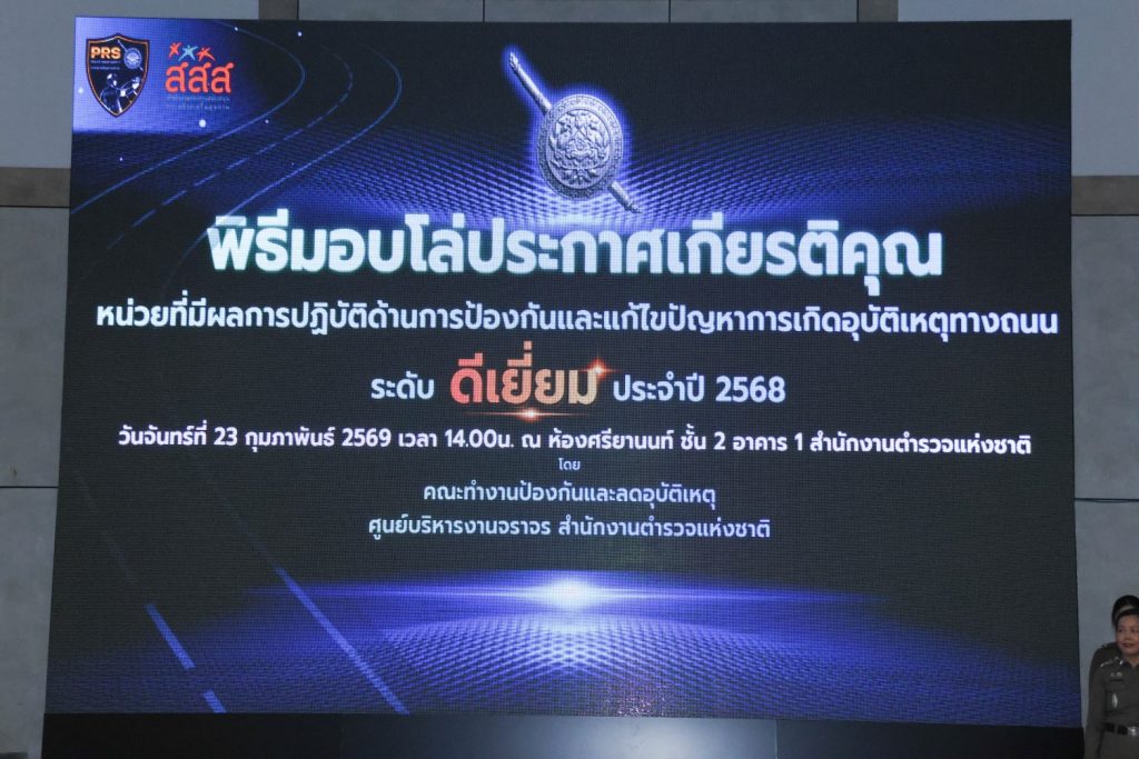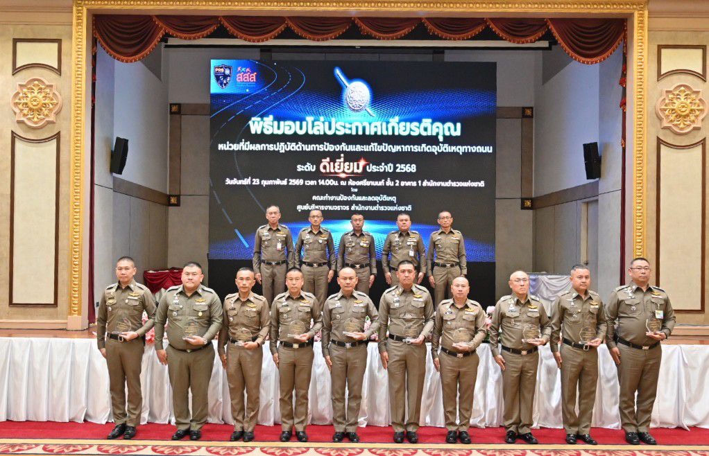 เมื่อวันที่ 23 ก.พ.69 เวลา 13.30 น. พล.ต.ต.สันทัศน์ เชื้อพุฒตาล ผบก.ภ.จว.ปัตตานี ได้เข้ารับมอบโล่ประกาศเกียรติคุณ ตามที่สำนักงานตำรวจแห่งชาติ อนุมัติจัดพิธีมอบโล่ประกาศเกียรติคุณแก่หน่วยที่มีผลการปฏิบัติงานด้านการป้องกันและแก้ไขปัญหาการเกิดอุบัติเหตุทางถนนในพื้นที่รับผิดชอบ(ดีเยี่ยม) ประจำปี 2568 โดยมี พล.ต.อ.สำราญ นวลมา รอง ผบ.ตร. เป็นประธานมอบโล่ เพื่อเชิดชูเกียรติและเป็นขวัญกำลังใจแก่หน่วยงานที่มีผลการปฏิบัติงานดีเด่น ณ ห้องศรียานนท์ ชั้น 2 อาคาร 1 สำนักงานตำรวจแห่งชาติ