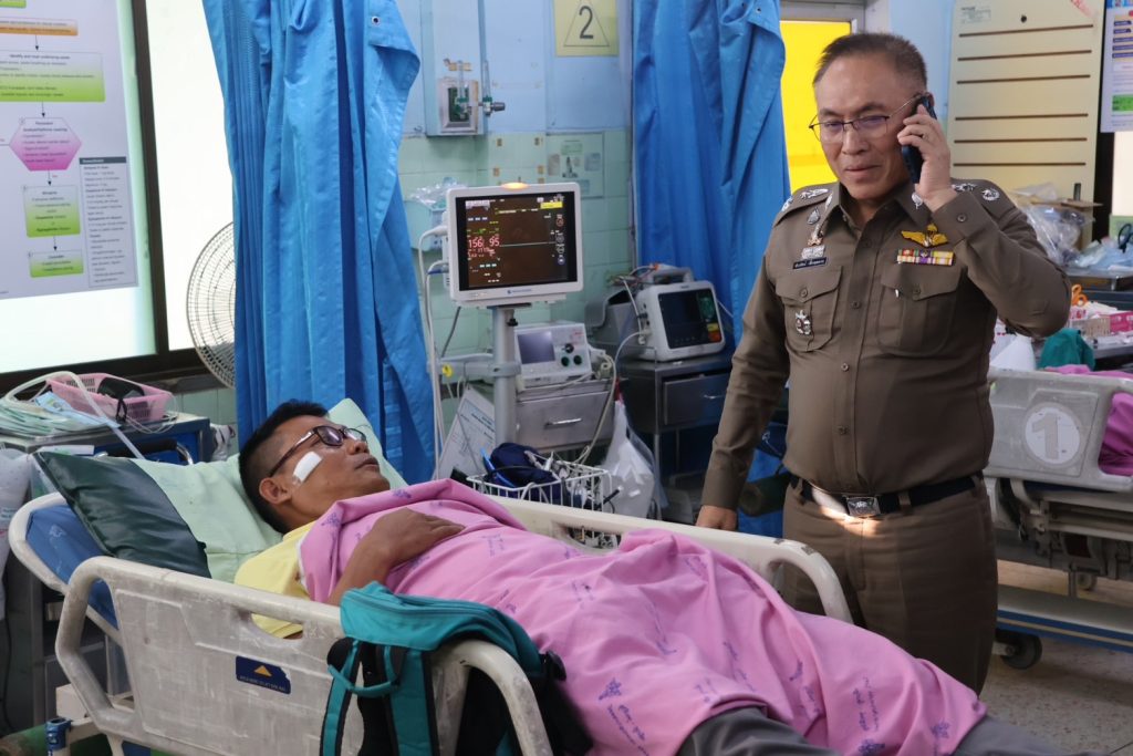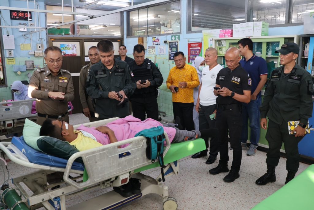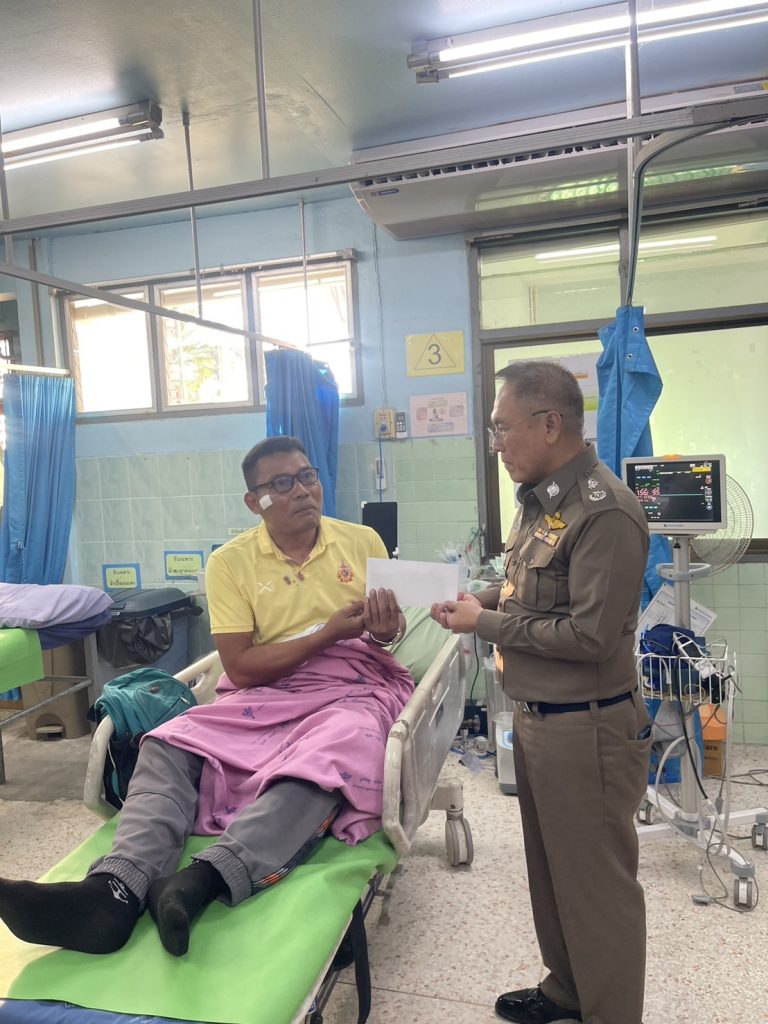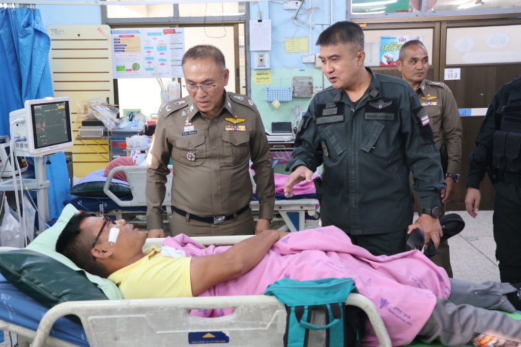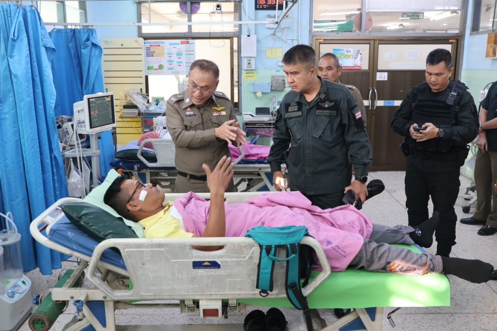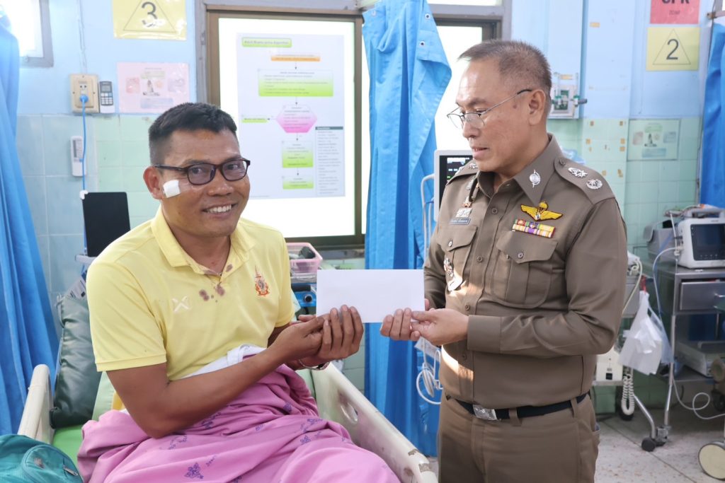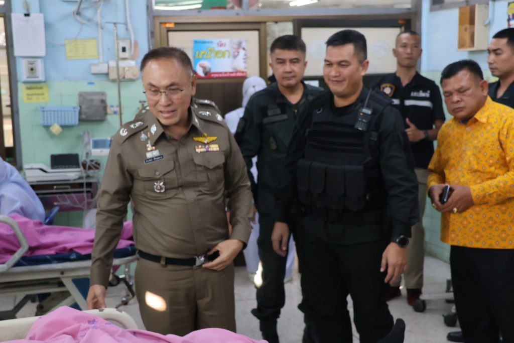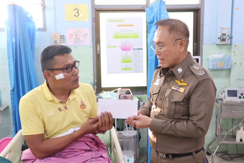 วันที่ 14 พ.ย.67 เวลา 16.00 น. พล.ต.ต.สันทัศน์ เชื้อพุฒตาล ผบก.ภ.จว.ปัตตานี, พ.ต.อ.ธีรพจน์ ยินดี ผกก.สภ.ยะหริ่ ได้เข้าเยี่ยมข้าราชการตำรวจที่ได้รับบาดเจ็บจากเหตุคนร้ายลอบวางระเบิด จากเหตุระเบิด 511 สะพานตันหยงถนนสาย 42 ขาลงสะพาน ม.1 ต.มะนังยง อ.ยะหริ่ง จว.ปัตตานี เป็นเหตุให้ ทรัพย์สินของทางราชการเสียหาย ได้รับบาดเจ็บเล็กน้อยทั้ง 5 ราย
