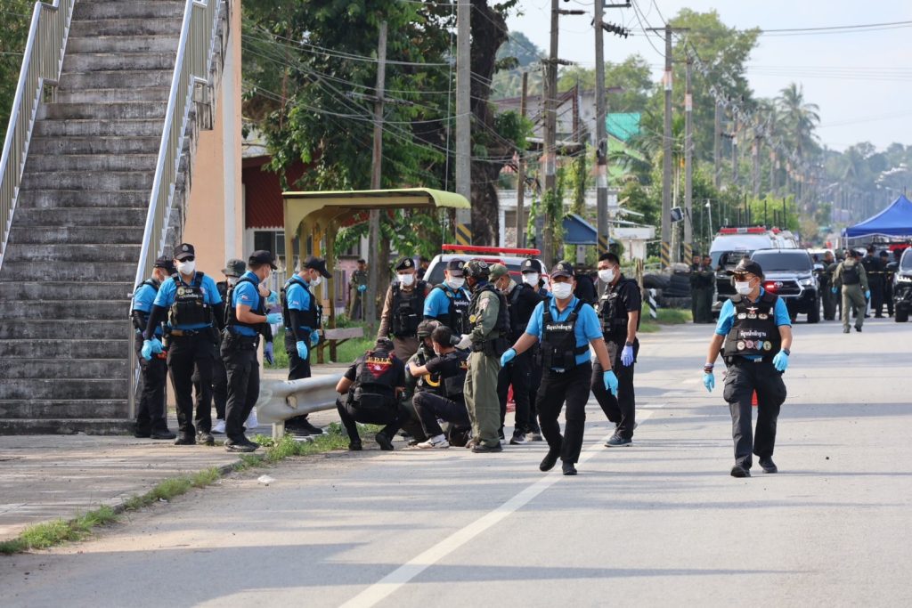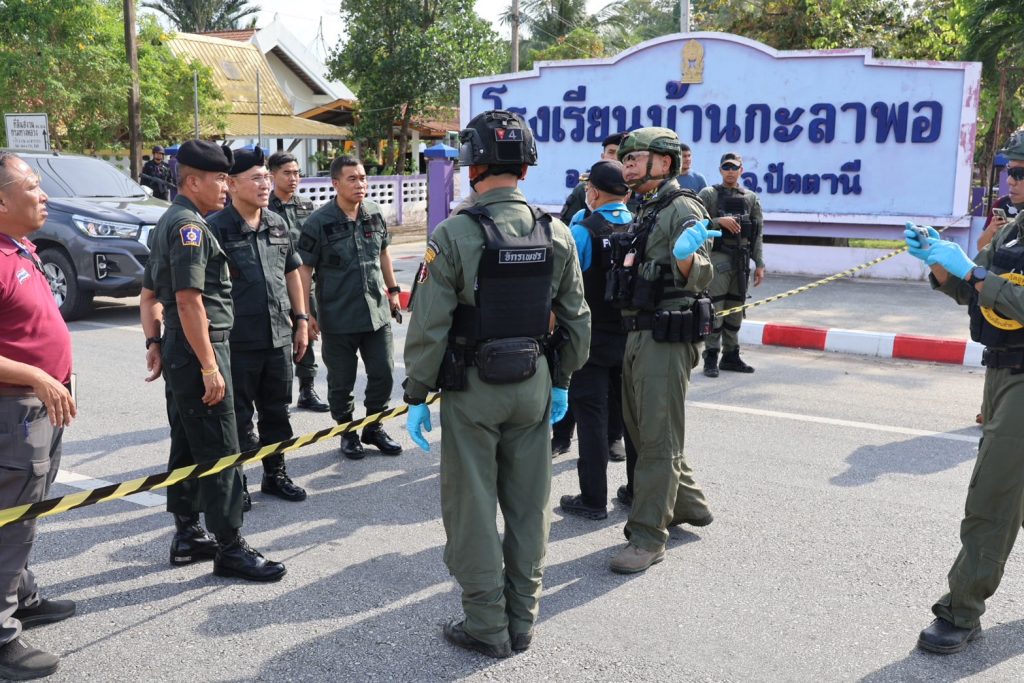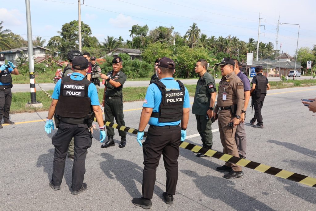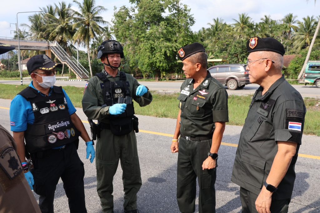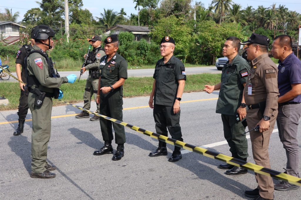วันที่ 3 ม.ค.68 เวลา 15.00 น. พล.ต.ต.กฤษฎา แก้วจันดี รอง ผบช.ภ.9, พล.ต.ต.สันทัศน์ เชื้อพุฒตาล ผบก.ภ.จว.ปัตตานี, พ.ต.อ.กองอรรถ สุวรรณขำ รอง ผบก.ภ.จว.ปัตตานี, พ.ต.อ.สุรนา วงศ์พรหมชัย รอง ผบก.ศพฐ 10, พ.ต.อ.กองทัพ เสนาทิพย์ ผกก.ปพ.ภ.จว.ปัตตานี, พ.ต.อ.เฉลิมชัย เพชรกาศ ผกก.สภ.สายบุรี พร้อมชุดพิสูจน์หลักฐานจังหวัดปัตตานี และชุดปฏิบัติการเก็บกู้วัตถุระเบิด ปพ.ภ.จว.ปัตตานี (EOD) ร่วมเดินทางเข้าตรวจสอบที่เกิดเหตุระเบิด บริเวณ หน้าโรงเรียนบ้านกะลาพอ ต.เตราะบอน อ.สายบุรี จว.ปัตตานี และวางกำลังปิดกั้นเพื่อเก็บพยานหลักฐาน ขยายผลติดตามสืบสวนหาตัวคนร้ายต่อไป
