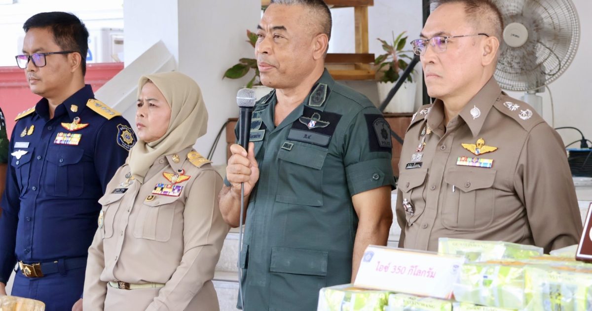 ผอ.ส่วนบังคับใช้กฎหมาย ป.ป.ส.ภาค 9, พ.ต.อ.ธัชชัย พงศ์มานะวุฒิ ผกก.สส.ภ.จว.ปัตตานี, พ.ต.ท.วัธราวุฒิ เพ็ชรฉุย สว.กก.สส.ภ.จว.ปัตตานี/ชปส.ภ.จว.ปัตตานี ได้ร่วมแถลงข่าวผลการปฏิบัติการจับกุมเครือข่ายนักค้ายาเสพติดรายใหญ่ในพื้นที่ พร้อมของกลาง ยาบ้า 1,400,000 เม็ด, ไอซ์ 350 กิโลกรัม, รถยนต์ 3 คัน และ โทรศัพท์มือถือ 6 เครื่อง ณ ภ.จว.ปัตตานี