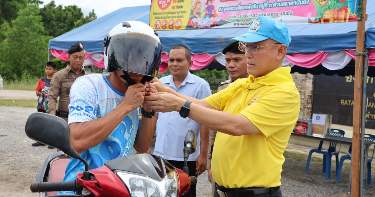 ตามโครงการจิตอาสาจราจร รณรงค์การขับขี่ปลอดภัย สวมหมวกนิรภัย เพื่อลดอุบัติเหตุจราจรทางบกในช่วงเทศกาลสงกรานต์ ณ จุดตรวจสี่แยกพังกับ ม.3 ต.ราตาปันยัง อ.ยะหริ่ง จว.ปัตตานี