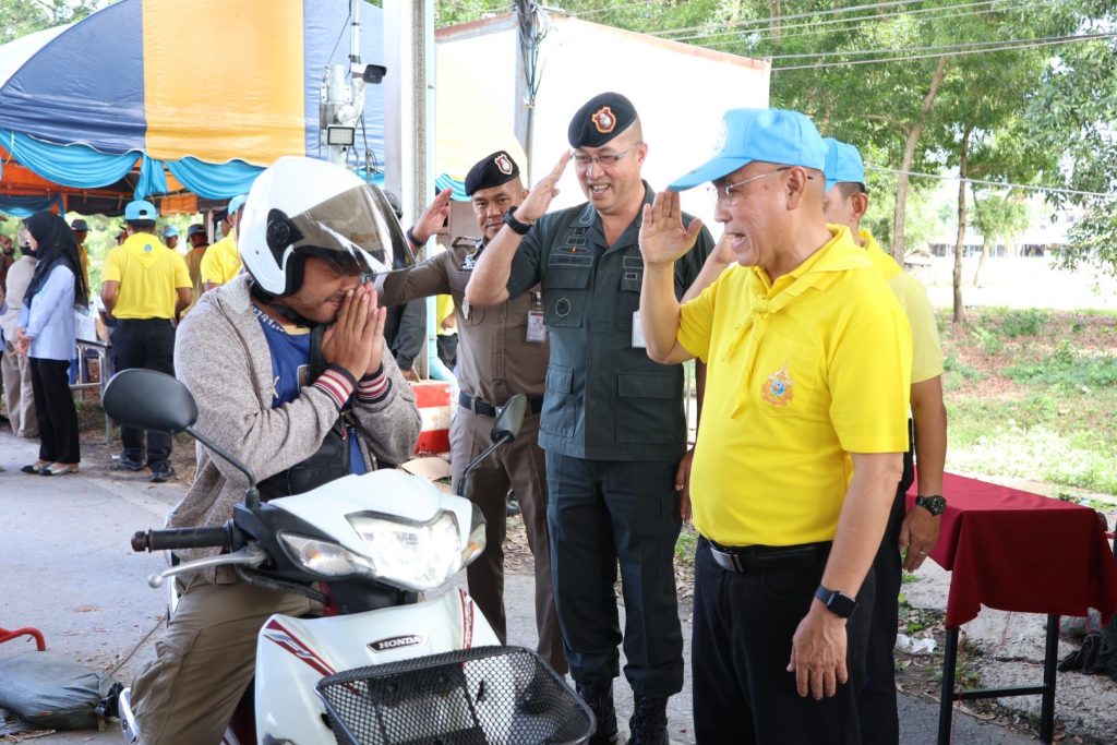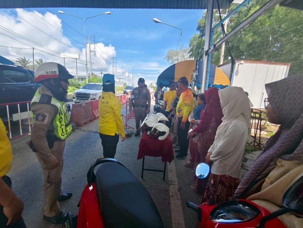 วันที่ 17 เม.ย.68 เวลา 10.00 น. พล.ต.ต.สันทัศน์ เชื้อพุฒตาล ผบก.ภ.จว.ปัตตานี, พ.ต.อ.พงษ์พันธ์ จันทรอาภา รอง ผบก.ภ.จว.ปัตตานี, พ.ต.อ.ศุภกร พึ่งรศ รอง ผบก.ภ.จว.ปัตตานี, พ.ต.อ.เจฟฟรีย์ ไศลมานกุล ผกก.สภ.เมืองปัตตานี ตรวจเยี่ยมจุดตรวจร่วมป้องกันและลดอุบัติเหตุช่วงเทศกาลสงกรานต์พร้อมมอบเครื่องอุปโภคบริโภค เพื่อเป็นขวัญกำลังใจแก่เจ้าหน้าที่ และอบรมการใช้รถใช้ถนนพร้อมแจกจ่ายหมวกนิรภัยให้แก่ประชาชนตามโครงการจิตอาสาจราจร รณรงค์การขับขี่ปลอดภัย สวมหมวกนิรภัย เพื่อลดอุบัติเหตุจราจรทางบกในช่วงเทศกาลสงกรานต์ ณ จุดตรวจดอนรัก (ปราการ 1) อ.เมืองปัตตานี จว.ปัตตานี