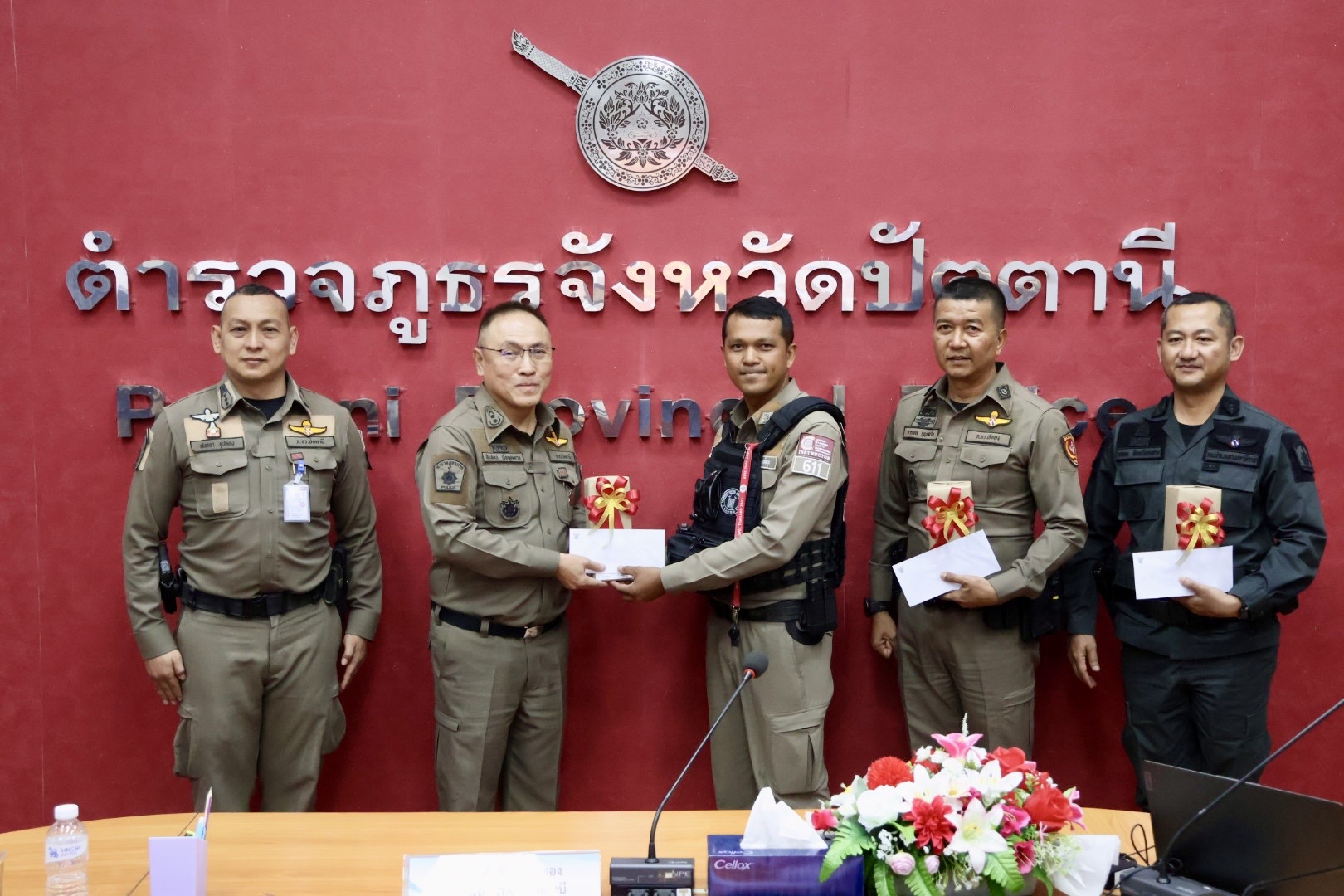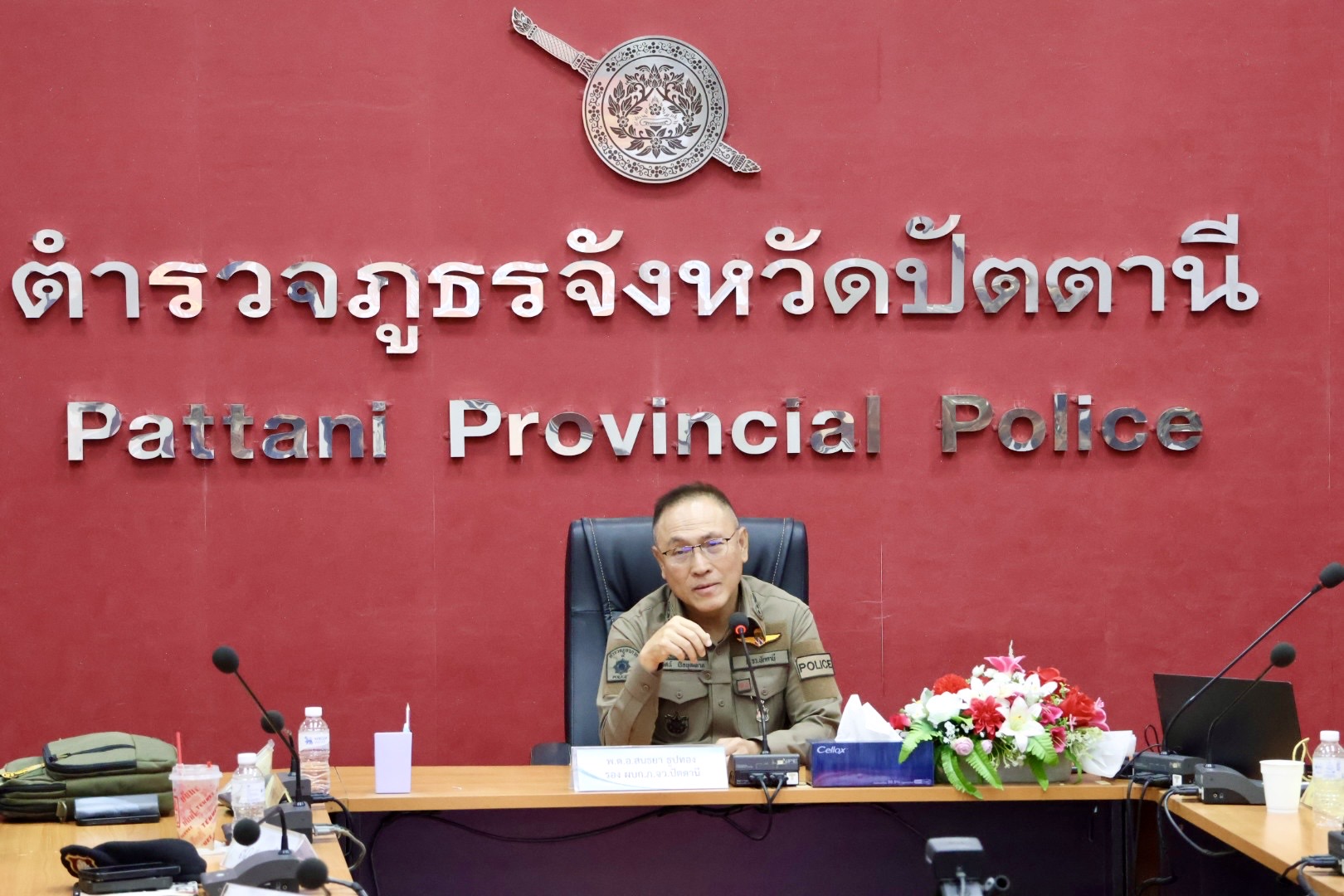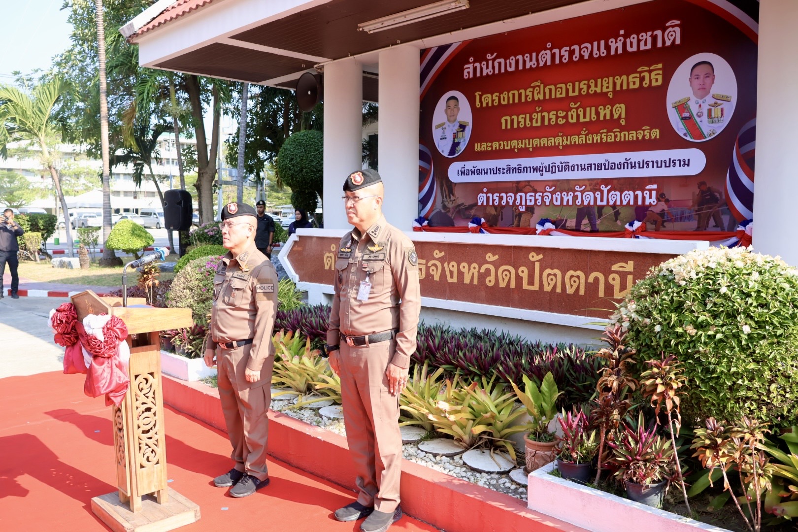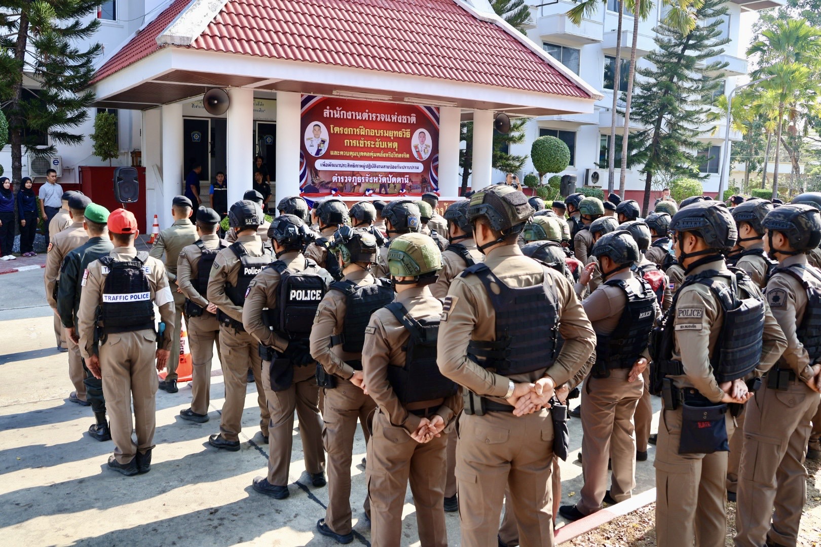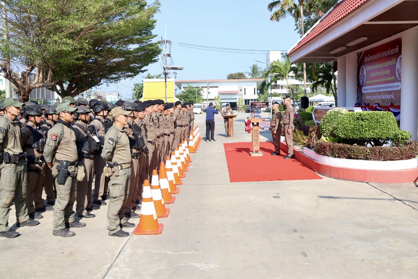 เมื่อวันที่ 9 เม.ย.69 เวลา 08.30 น. พล.ต.ต.สันทัศน์ เชื้อพุฒตาล ผบก.ภ.จว.ปัตตานี (ประธานพิธี), พ.ต.อ.ศุภกร พึ่งรศ รอง ผบก.ภ.จว.ปัตตานี, พ.ต.อ.สนธยา ธูปทอง รอง ผบก.ภ.จว.ปัตตานี ร่วมเปิดโครงการฝึกอบรมยุทธวิธีการเข้าระงับเหตุและควบคุมบุคคลคลุ้มคลั่งหรือวิกลจริต เพื่อพัฒนาประสิทธิภาพผู้ปฏิบัติงานสายงานป้องกันปราบปราม ตำรวจภูธรจังหวัดปัตตานี ประจำปีงบประมาณ พ.ศ.2569 ณ หน้าอาคาร ภ.จว.ปัตตานี