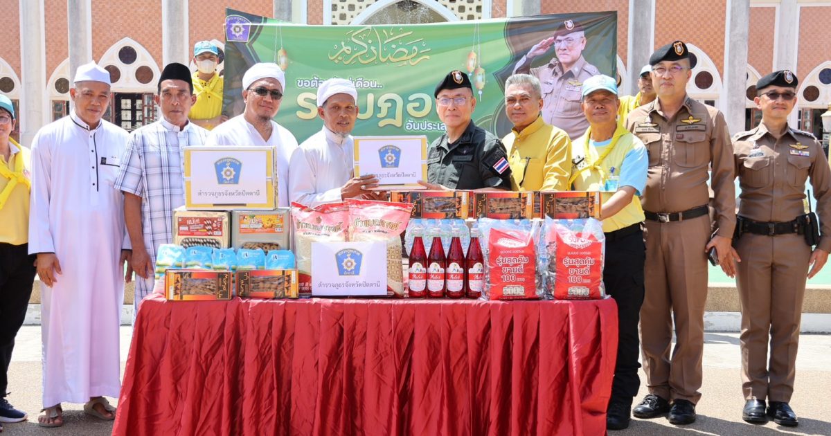 วันที่ 7 มี.ค.68 เวลา 13.30 น. พล.ต.ต.สันทัศน์ เชื้อพุฒตาล ผบก.ภ.จว.ปัตตานี, พ.ต.อ.ประยงค์ โคตรสาขา รอง ผบก.ภ.จว.ปัตตานี, พ.ต.อ.ศุภกร พึ่งรศ รอง ผบก.ภ.จว.ปัตตานี, พ.ต.อ.เจฟฟรีย์ ไศลมานกุล ผกก.สภ.เมืองปัตตานี พร้อมด้วยข้าราชการตำรวจจิตอาสา ภ.จว.ปัตตานี และ สภ.เมืองปัตตานี เดินทางเข้ามอบสิ่งของอุปโภคบริโภคน้ำดื่ม ตามโครงการรอมฎอนสัมพันธ์ ประจำปี 2568 ณ มัสยิดกลางปัตตานี